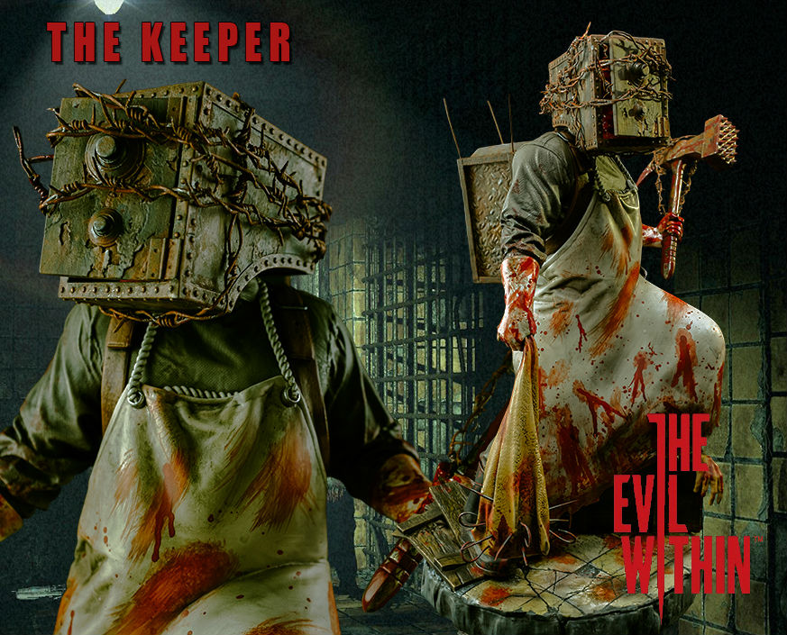 Special painting techniques have also been applied to the Keeper to give every facet of the statue a realistic appearance; from the bloodstains on his clothes to the rusted metal barbed wire. The Keeper stands approximately 15 inches tall, from the bottom of the base to the top of his heavy safe head.