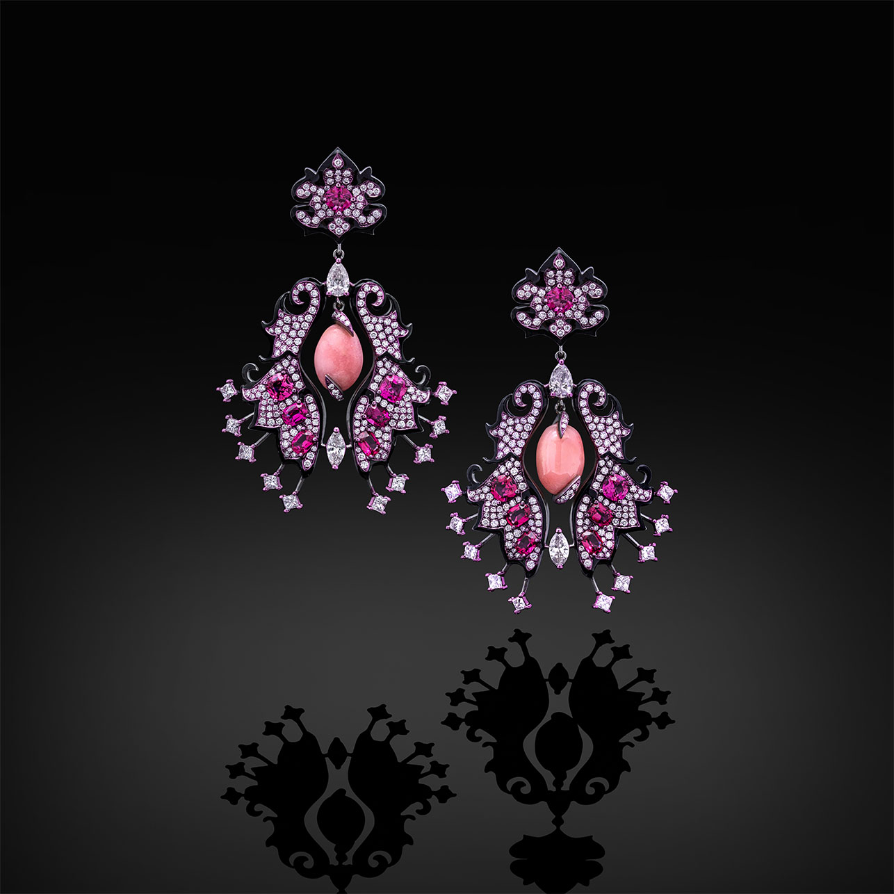 18K White Gold, Diamond, Spinel, Conch Pearl