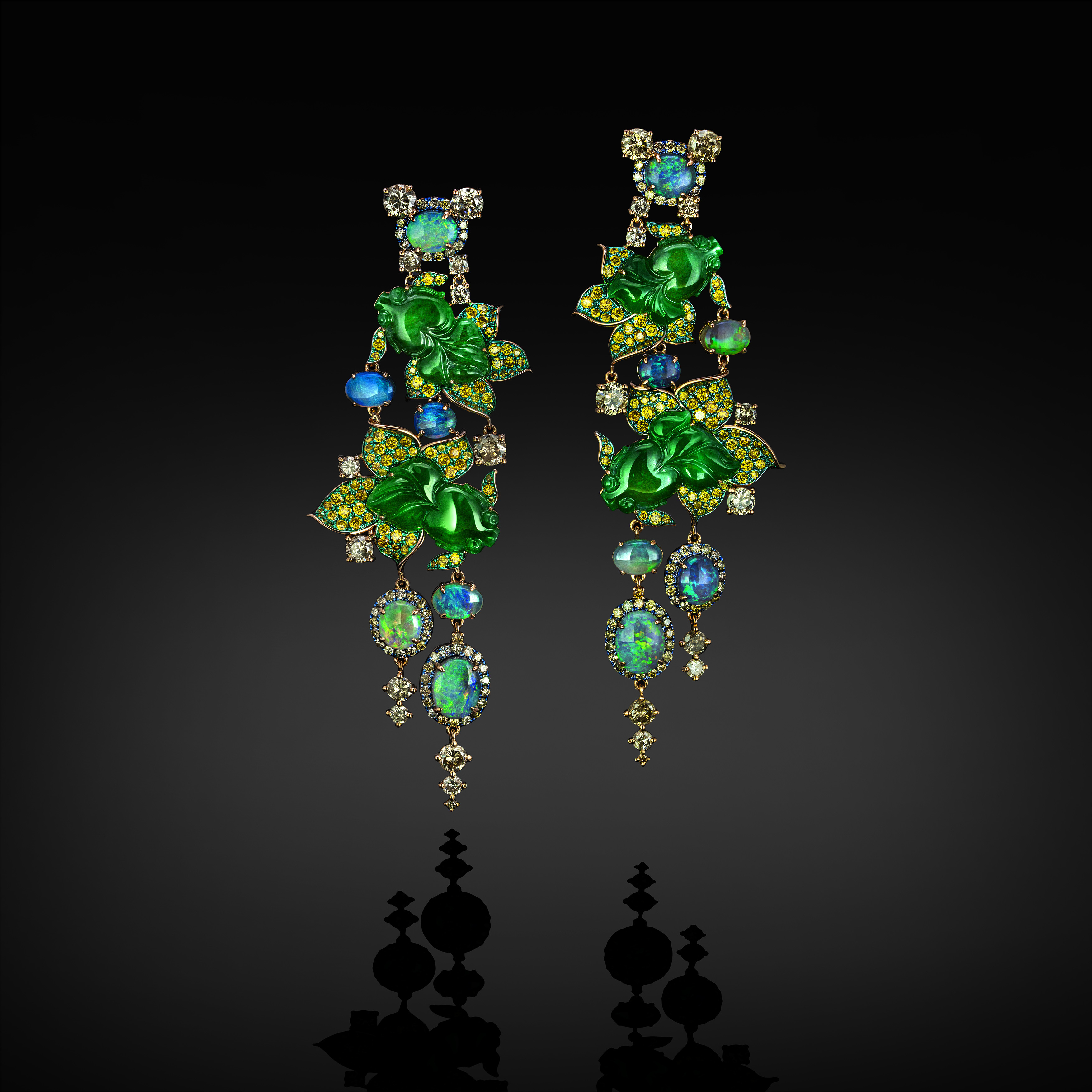 18K Rose Gold, Yellow Diamond, Color Diamond, Opal, Green Jade