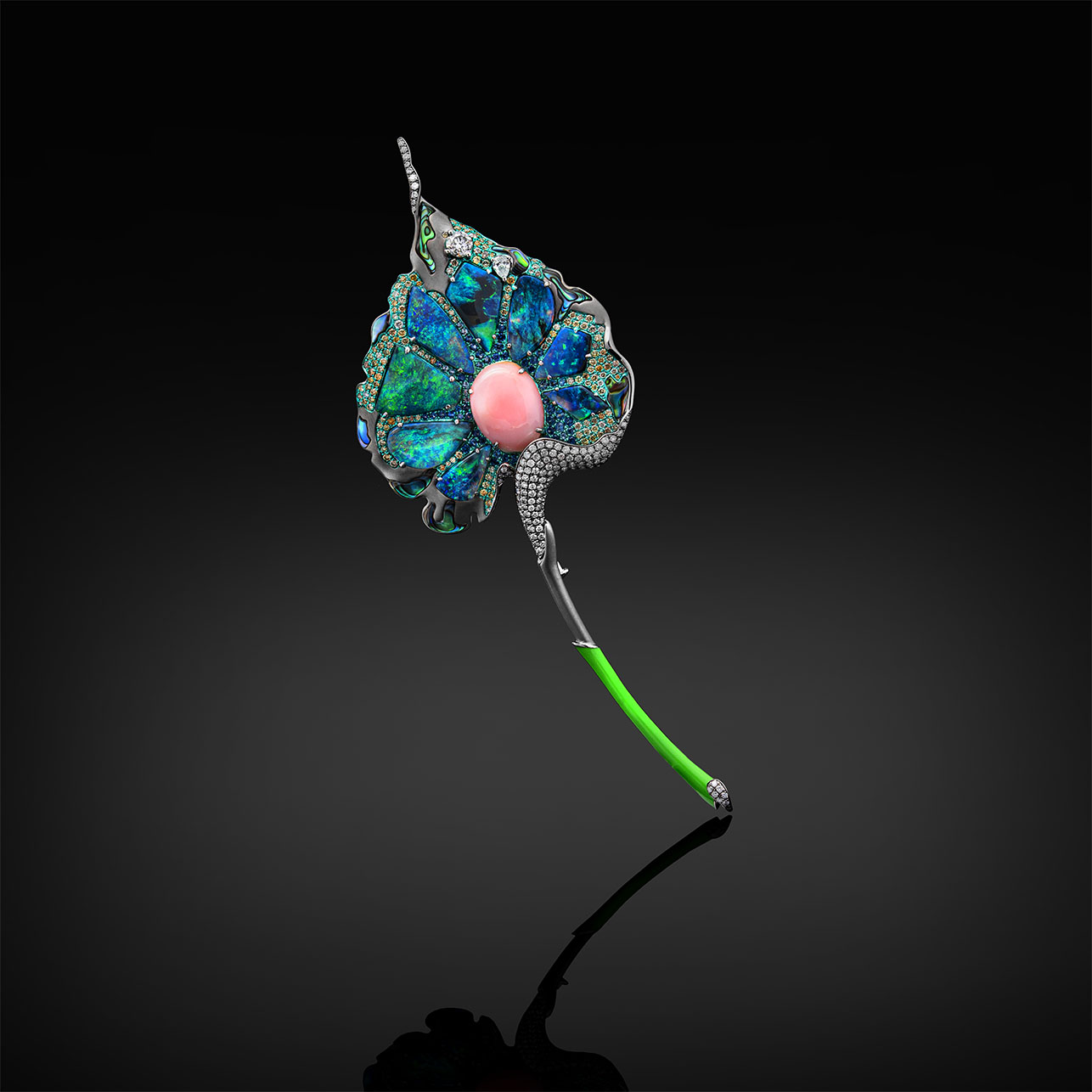 18K White Gold, Blue Sapphire, Abalone Shell, White Diamond, Color Diamond, Opal, Conch Pearl