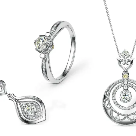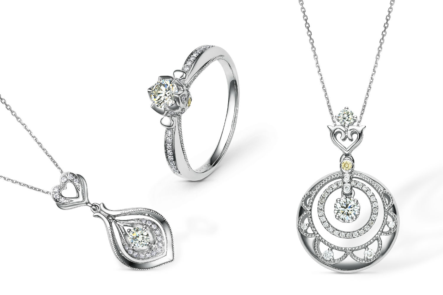 The delicate antique design with the use of white and colored diamonds presents the royal elegance of a princess. The designer gets inspriation from man who is deeply in lo9ve with his girl would grant her a crown of his own and treat her like a princess, beautiful and elegant.