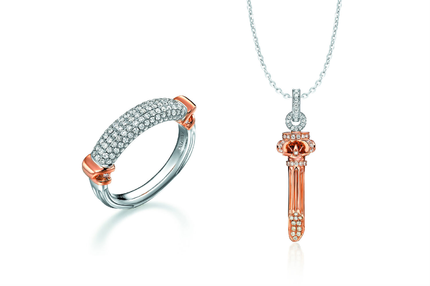 This design of dazzling diamond band finely symbolizing plato's eternal love by portraying the oath making in front of the Acropllis, with the witness of Cupid.