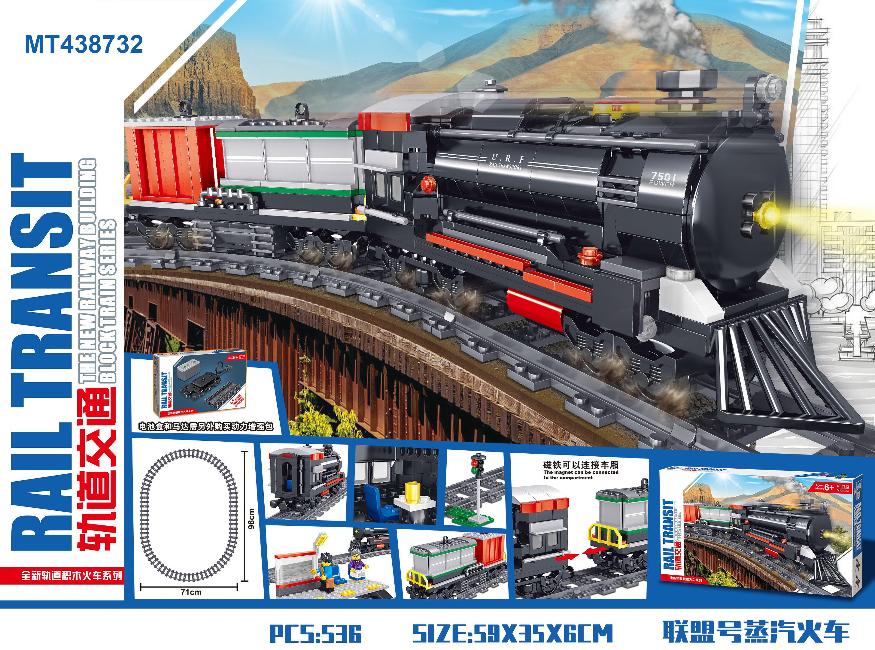 The new railway building block train series (536 pcs)