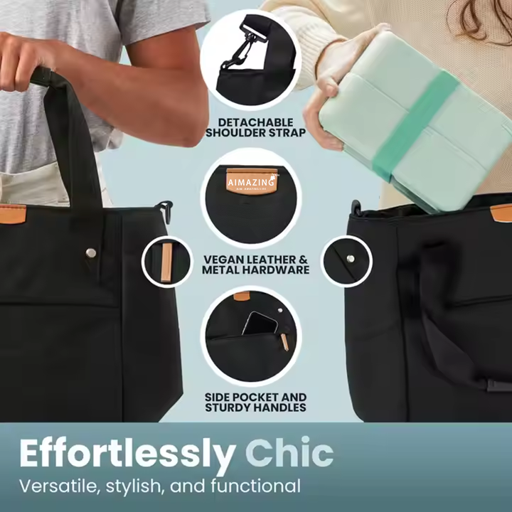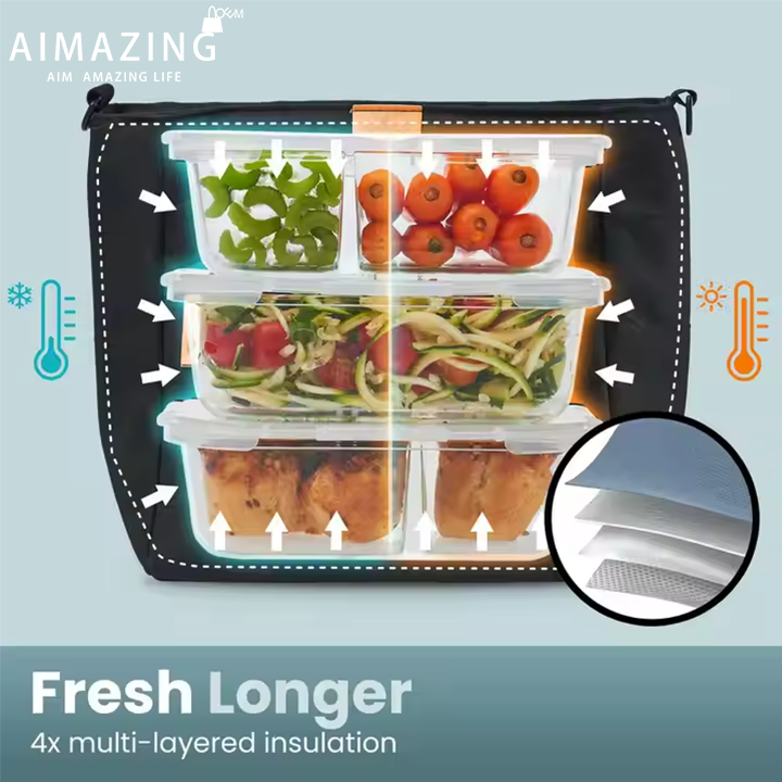 Unrivaled Insulation Capability:Aimazing's insulated cooler bags, including specialized insulated lunch bags and uniquely engineered insulated variants, are ingeniously built with state-of-the-art technology. By incorporating high-performance insulation materials, these bags possess an extraordinary ability to maintain the optimal temperature of your food, beverages, breast milk, or temperature-sensitive medical supplies over extended periods. Whether you're packing a steaming hot meal for a hectic workday using our thermal lunch bags or ensuring your drinks stay delightfully chilled during a pleasant picnic with our portable cooler bags, the guarantee of freshness remains steadfast.