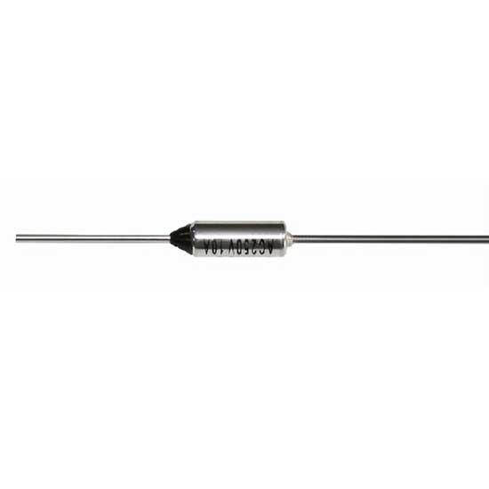 This presented thermal fuse is used to interrupt electric current when heated to a specific temperature. It is professionally engineered, ensuring reliable and stable performance. This outlined thermal fuse is widely used in electrical appliances, including coffeemakers and hair dryers.