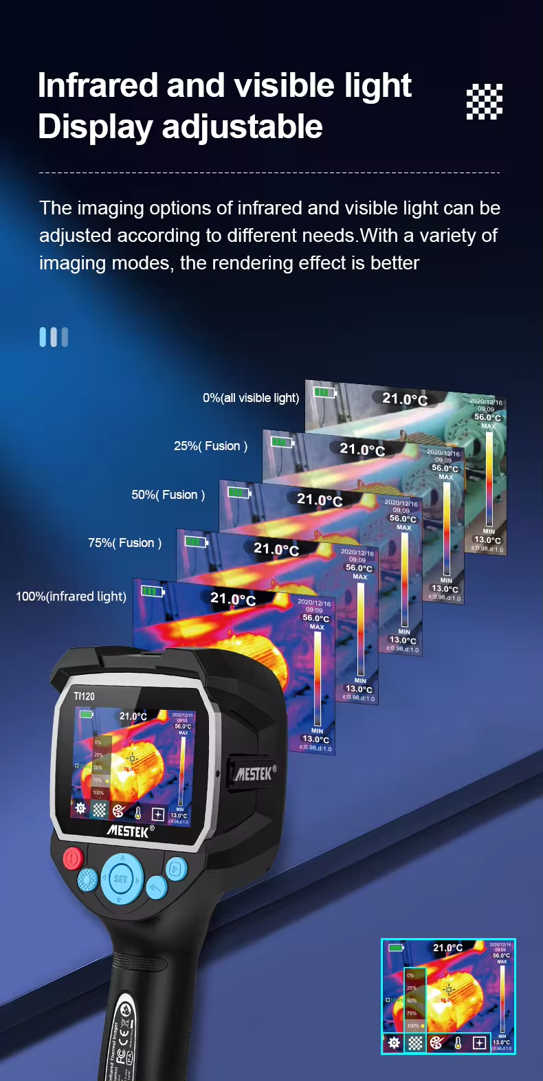 Mestek Handheld Temperature Thermal Imaging Camera -20~400C Color Display Screen Industry Temperature Tester Thermal Imager