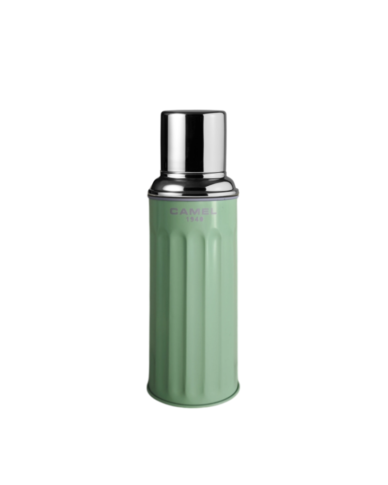 Thermal flask with glass vacuum inner (with integrated stopper in cap)
