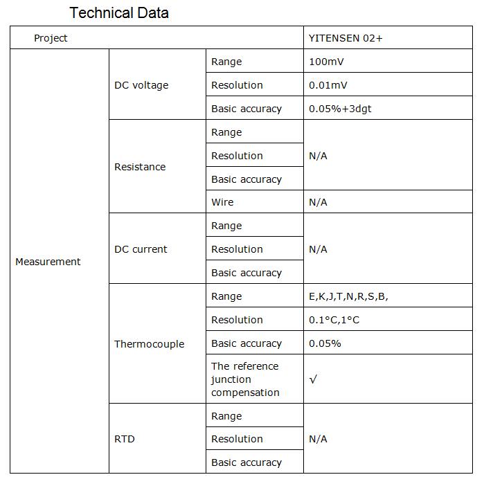 3. Measuring function: DC voltage, 8 kinds of thermocouple (R / S / K / E / J / T / B / N).