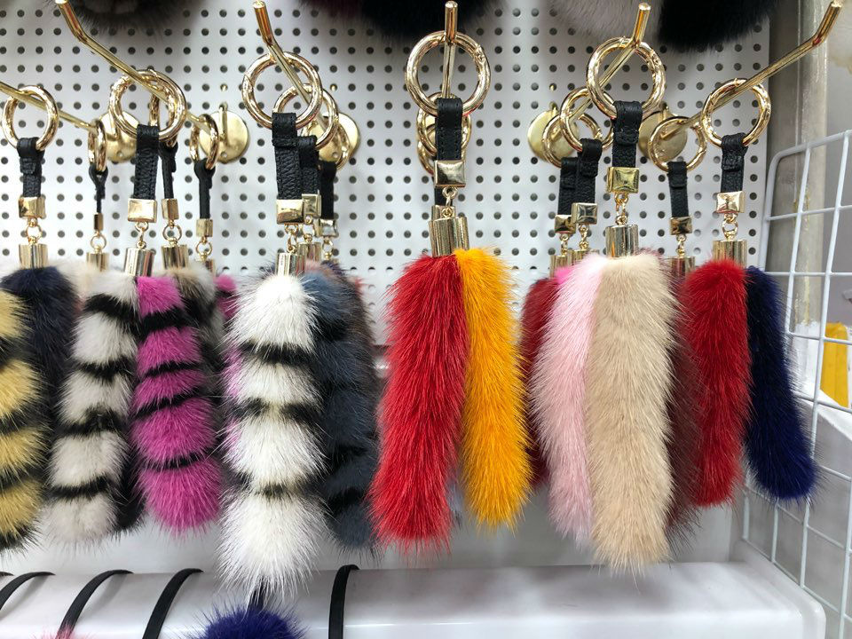 • Material mink tail fur. key chain iron ring and sheep leather strap