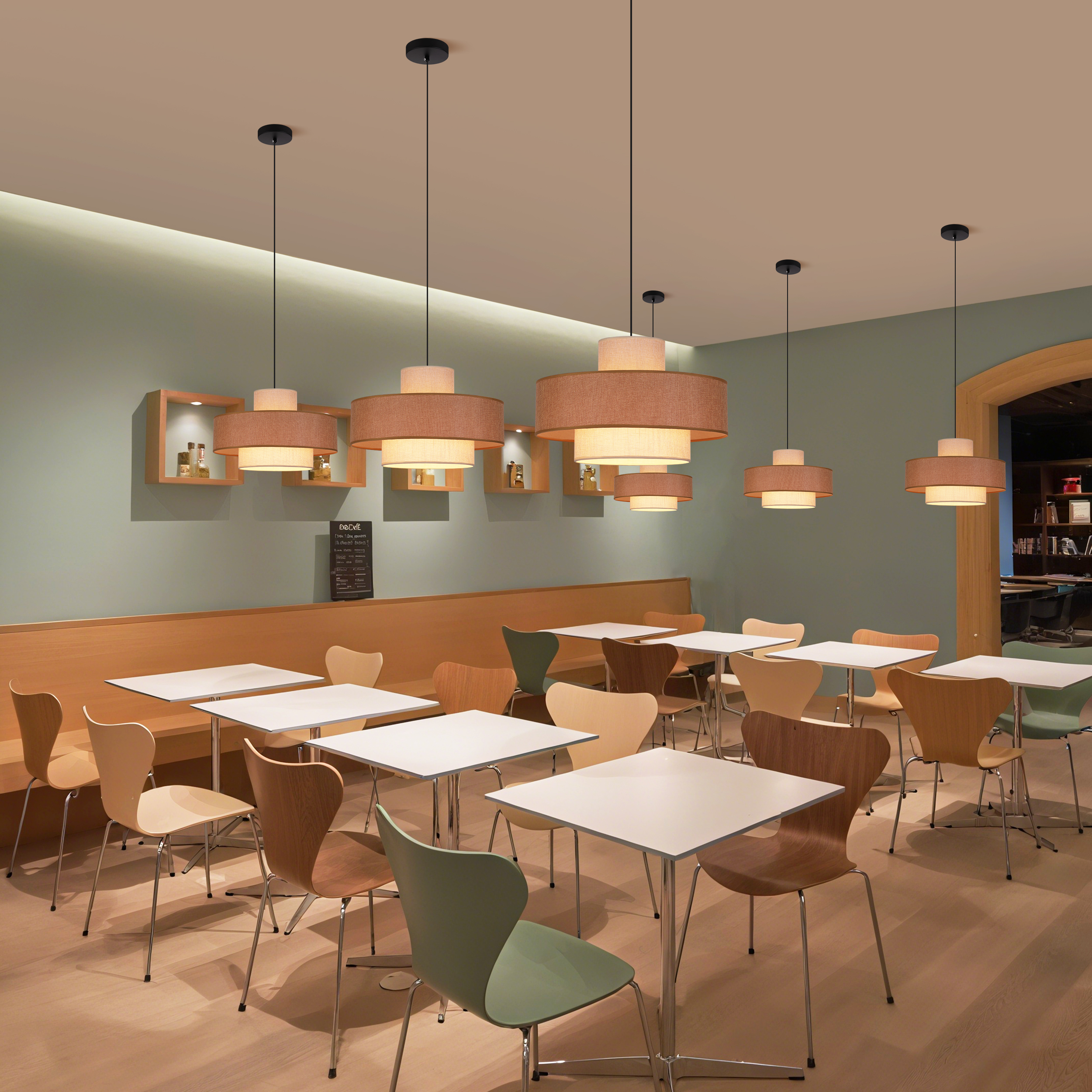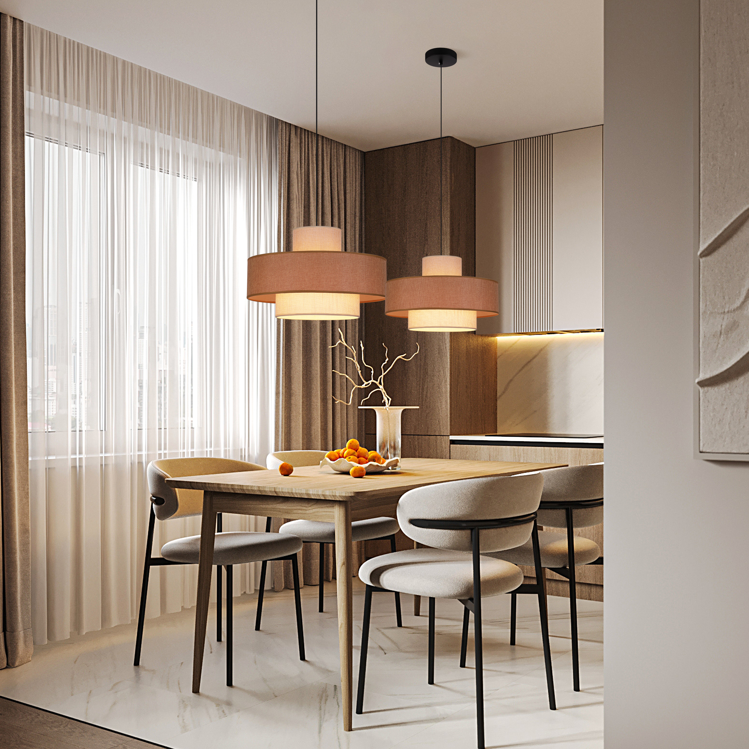Elevate your modern living space with this exquisitely designed pendant light. Featuring layered linen - textured shades in warm hues, it emits a cozy and inviting glow that transforms any area—be it a dining nook, a creative studio, or a stylish corner of your home. Its sleek, contemporary silhouette seamlessly blends with minimalist and Scandinavian - inspired interiors. Meanwhile, the soft illumination adds depth and warmth to your decor. Ideal for those who desire both style and comfort, this fixture is not just a lighting piece—it’s a statement that brings elegance and tranquility to your daily life.