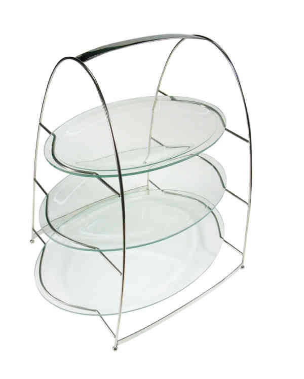 The buffet server is formed by two inverse U-shaped frame for a simple and clear view. The three-tire construction matches well with three oval glass plates for serving various types of food at the same time.