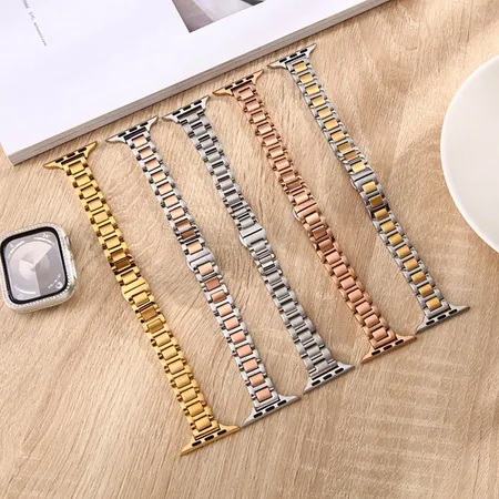 Three bead stainless steel strap applicable for classical watch and apple watch full series