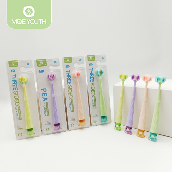 Three sets of bristles wrap around teeth at different angles for quick cleaning.3x clean quick cleaning.