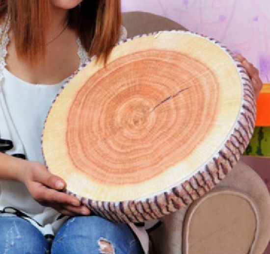 This throw cushion features a round silhouette printed with annual growth rings to replicate a real piece of wood. It boasts a soft and comfortable construction to relax your back while sitting down. This throw cushion will add a playful touch to any interior decor.