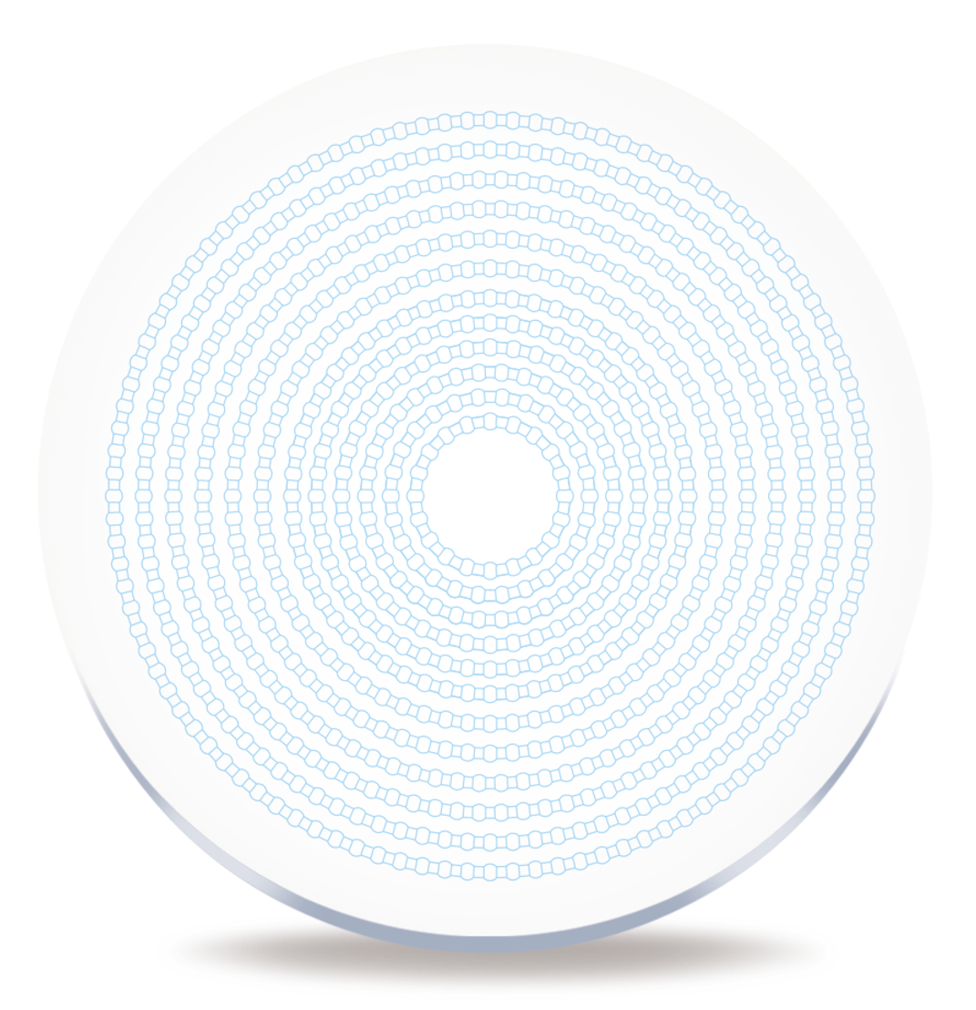 The combination of myopia defocus microlenses and free toric surface microcylinders not only ensures adaptability in the early stage but also provides variability of signals in the later stage. The density of the microstructure transitions from dense to sparse from the inside out, with a filling rate of 55%. Its unique dual-effect myopia control mechanism presents variable optical signals at the fundus, achieving excellent control results.