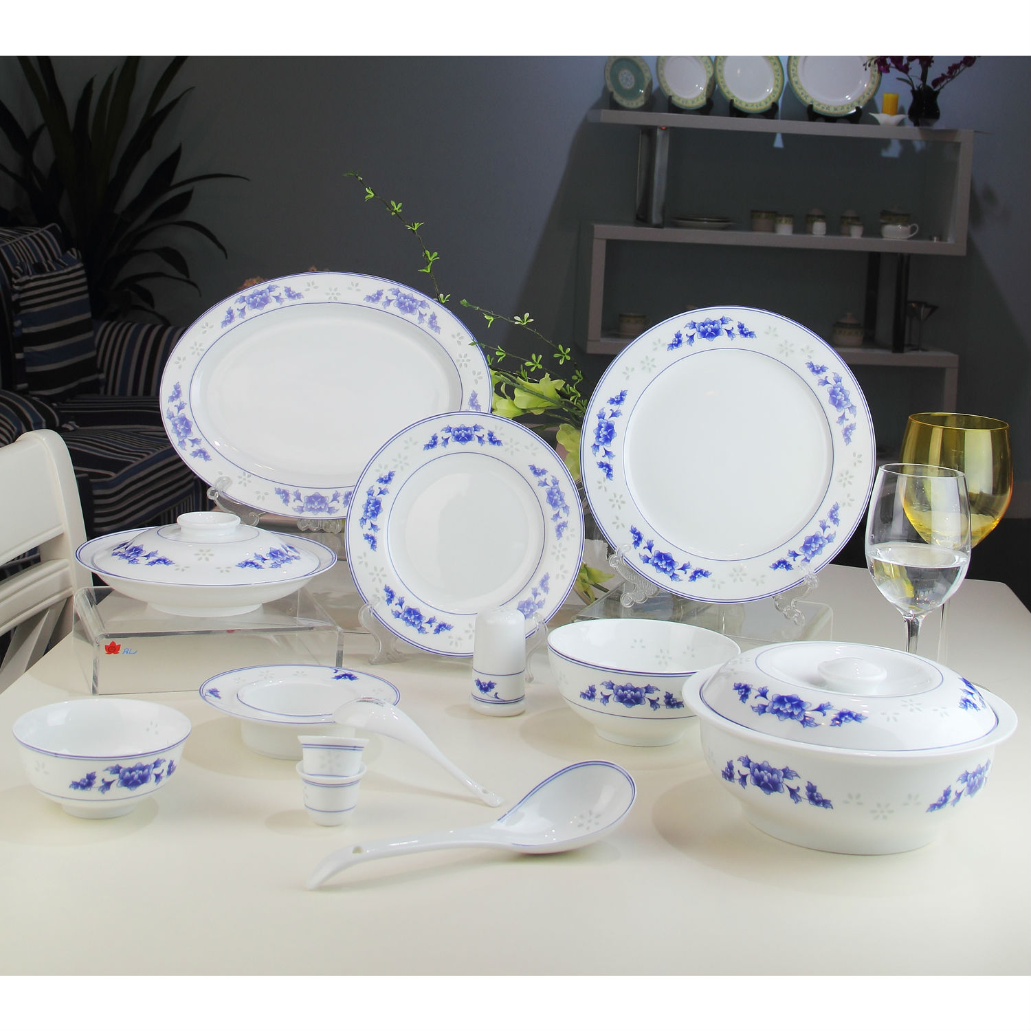 Showcased here is a set of classy and elegant tableware set that includes all the essential pieces that you need on the dining table. The classy white bodies are accented with blue patterns for added appeal. Finely made of good quality materials, all the items in the highlighted set flaunt both high class appearance and reliable durability.