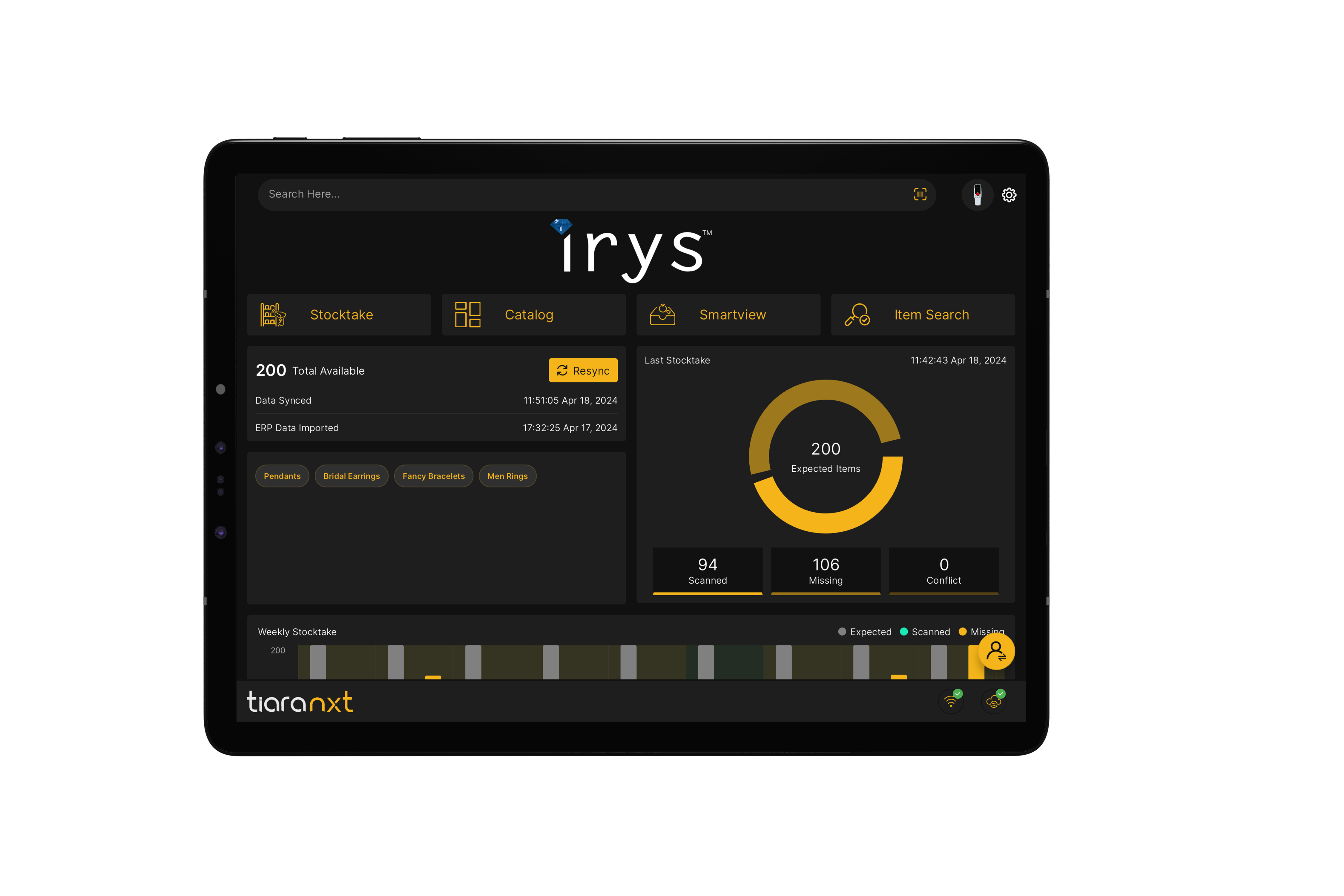 Irys TiaraNXT is a cross-platform application for Windows, Android, and iOS, purposefully crafted to meet the diverse inventory tracking needs of jewelers and diamantaires. Designed for flexibility, TiaraNXT streamlines and accelerates the scanning process from daily stock audits to comprehensive inventory checks. All accessible from anywhere, with easily downloadable reports for seamless monitoring.
