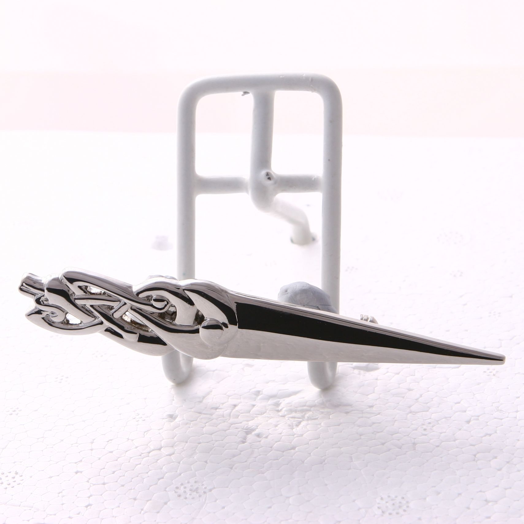 -This tie bar is decorated with Rhodium metal