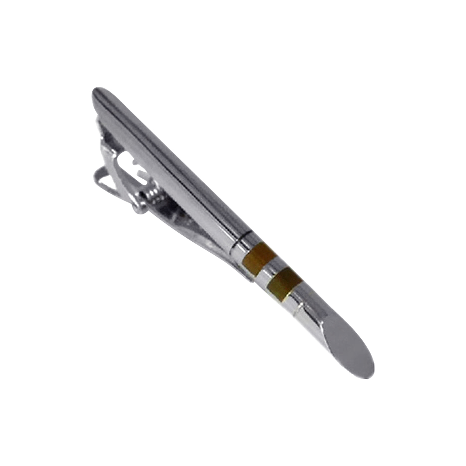 Contoured in a slim cylinder, this tie clip features slating-cut ends for a sleek detail. With two gleaming stripes topped at the face, this shiny one flaunts understated elegance for a nice-looking everyday accessory. Adopting easy-to-use spring clip, this piece attaches to your tie and shirt firmly.