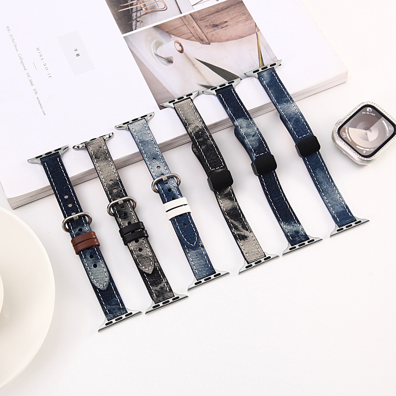 Tie-dye denim watch strap applicable for classical watch and apple watch full series