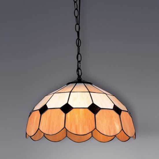This pendant lamp flaunts a dome-shaped Tiffany lampshade in beige with a chic touch. The simple geometric pattern lends modern and minimalist flair to the design. The Tiffany lamp is to be installed with an E27 light bulb.