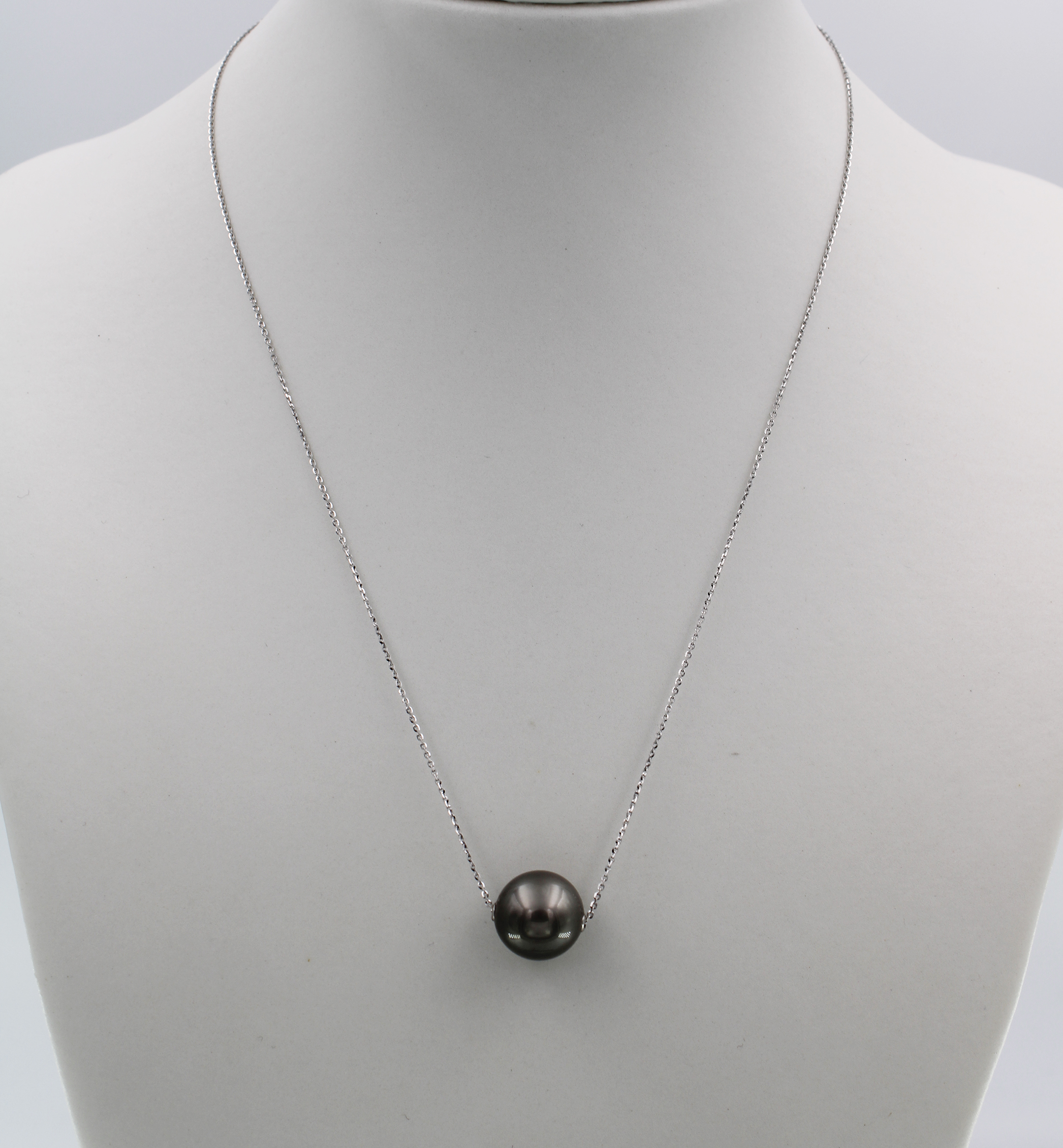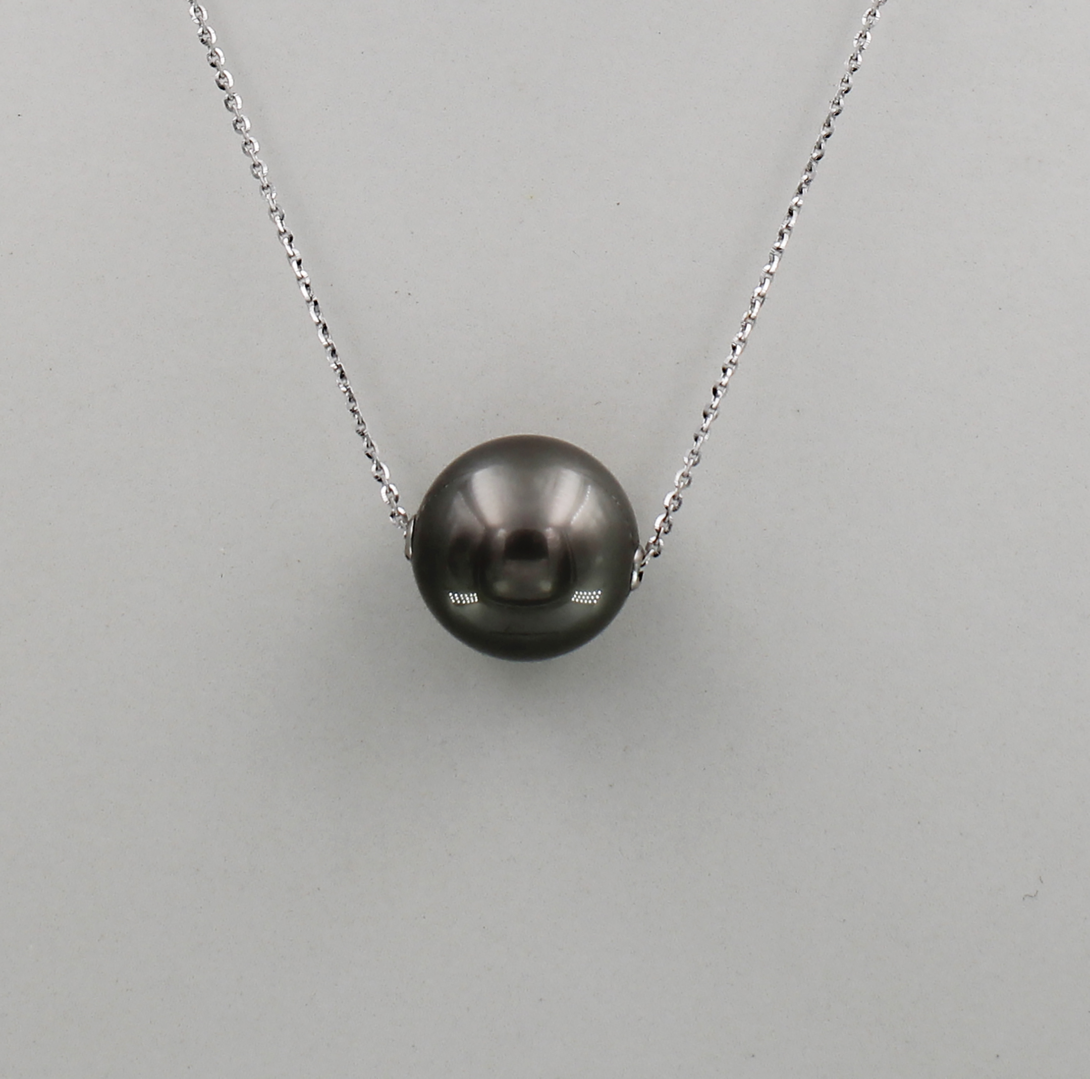 40cm+5cm ext. chain, , 0.8mm 925 sterling silver box chain Necklace, centre with 1pc of 11-12mm Tahiti Pearl B grade with is movable in the chain necklace , all 925 s/s material are rhodium plated, free of nickle.