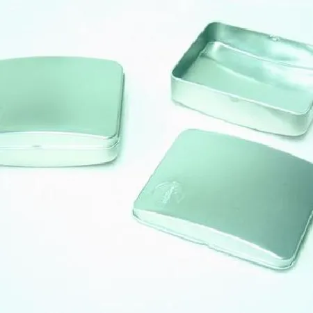 • Rectangular tin box with lift off lid.