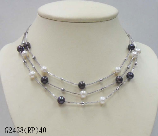 • 40cm + 42cm + 44cm 3 different rows of sterling silver chains, with fresh water pearl, potato shape, 7.0-7.5mm, in white and peacock color in combination and 3mm round sterling silver bead and 4mm round faceted sterling silver beads.
