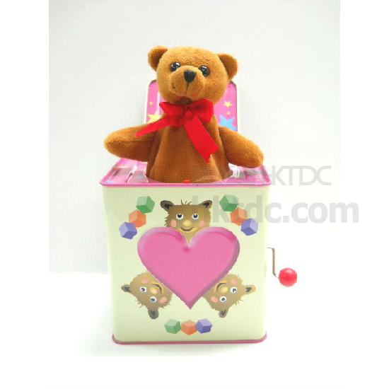 • Adorable red ribbon bear pops out from the colorful box while the melody ends.