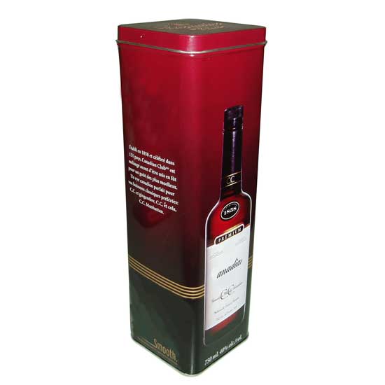 This tin wine box comes with a 4C offset-printed body for an exquisite style. The tall square box flaunts sturdy construction, offering exquisite and protective packaging to the premium wine. The snug-fit lid adds reliability to the wine box.