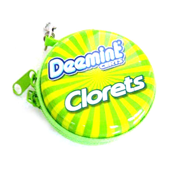 This round zipper purse comes with a sharp logo with eye-catching patterns. This purse is made with tin material for a playful style and long durability. This coin purse is a convenient personal accessory for anyone.