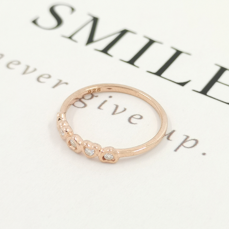 Tiny White Zircon Fashionable Rose Gold Heart Ring