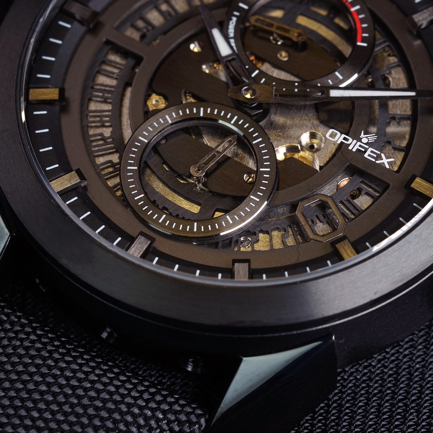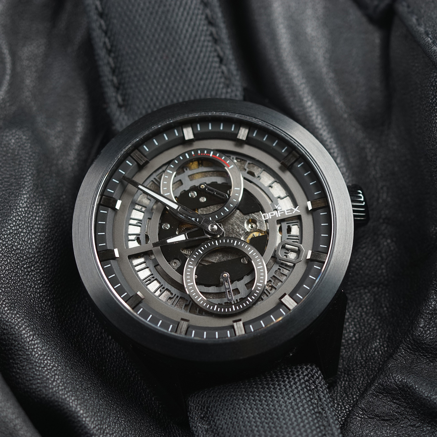 Tap for a dapper dose of charm with this ravishing wristwatch. Standing the test of time with an ultralight titanium case, the divine piece is geared up with an intricate power reserve indicator and an exquisite date wheel across the unique semi-skeleton dial to convey a label of sheer opulence and sophistication. Rounded off with a stitched canvas strap, the dignified piece boasts a classy addition to any ensemble.