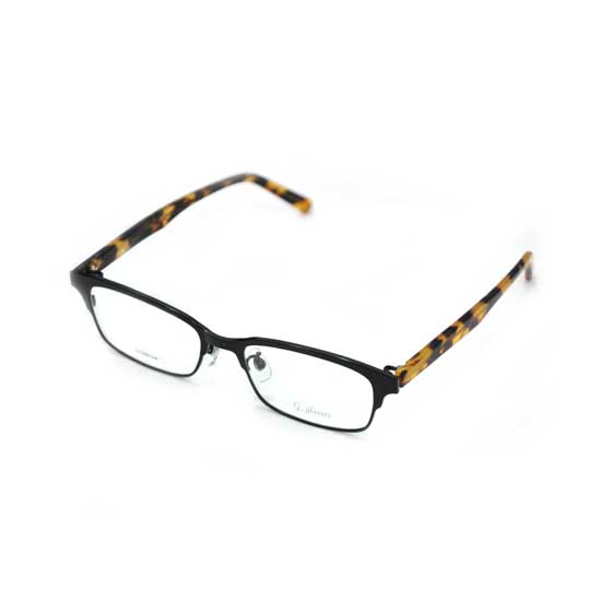 This titanium glasses frame features black angular rims, flattering any face contour. The temple arms are designed with an enchanting tortoise pattern, which spices up the whole design. The chic spectacle frame is finished with adjustable transparent nose pads for optimum wearing comfort.