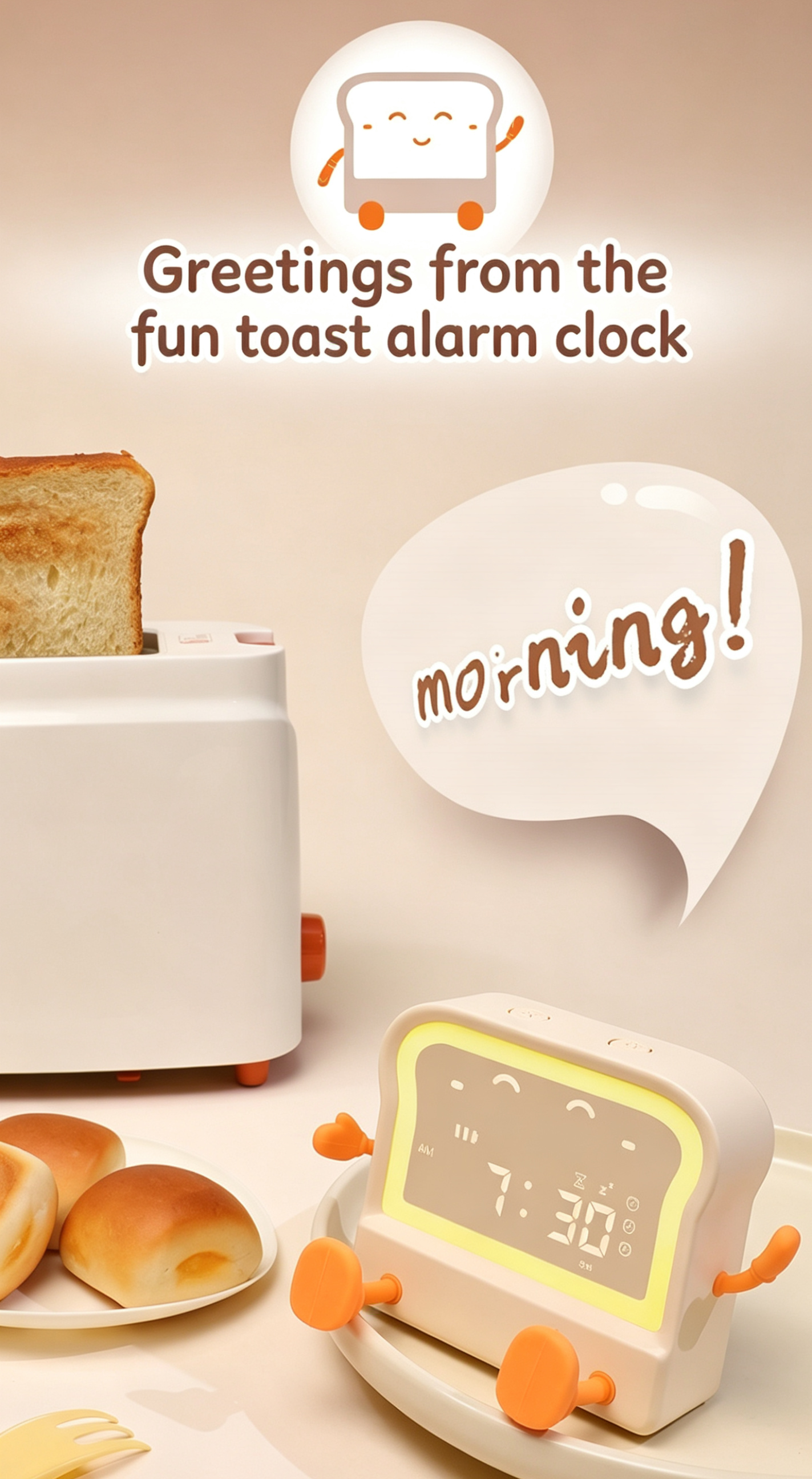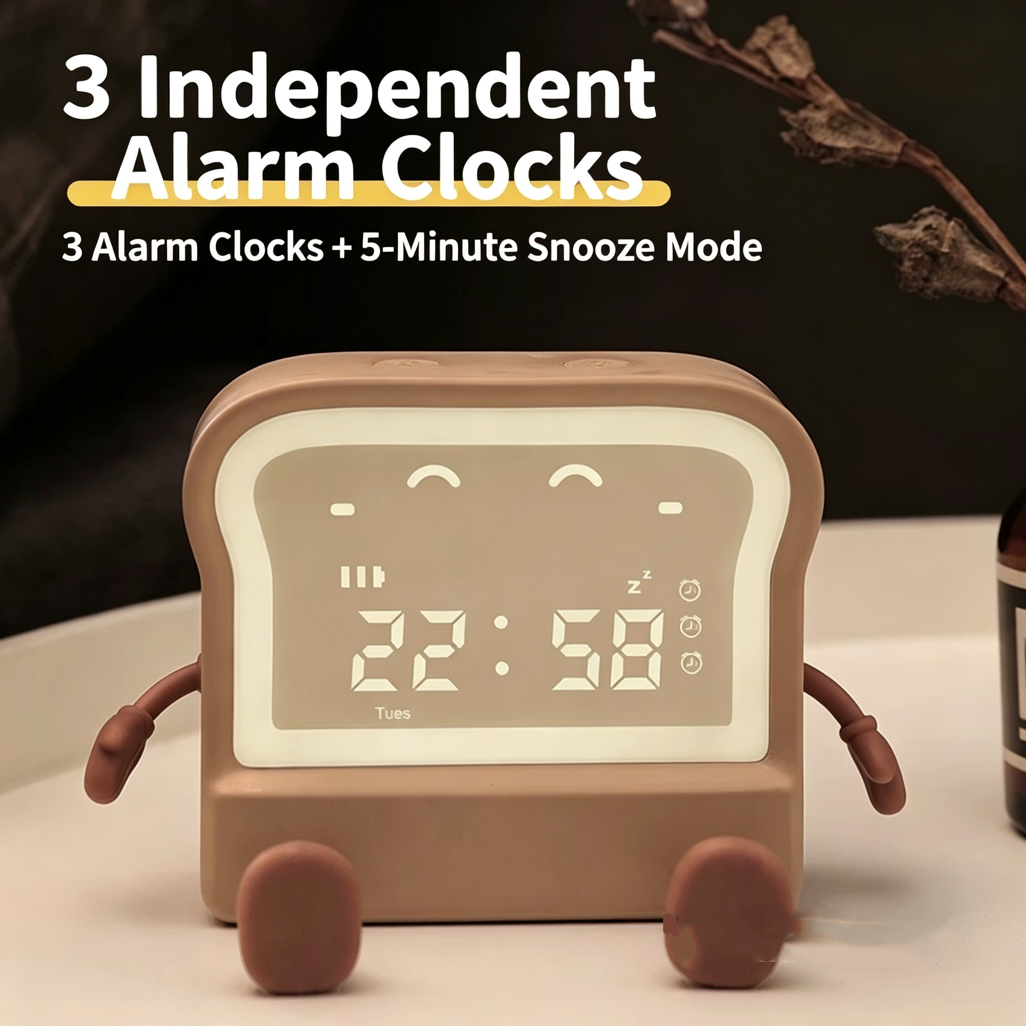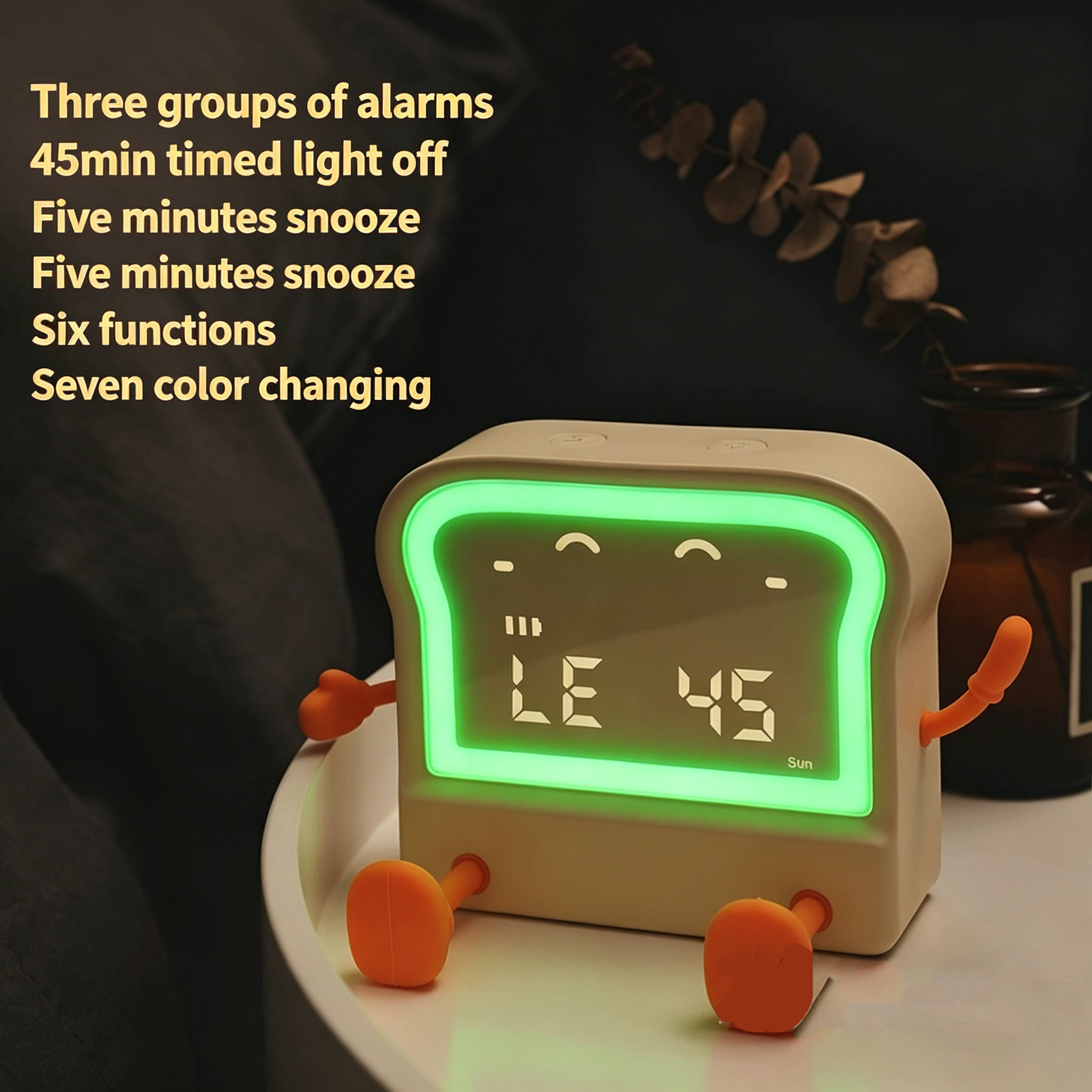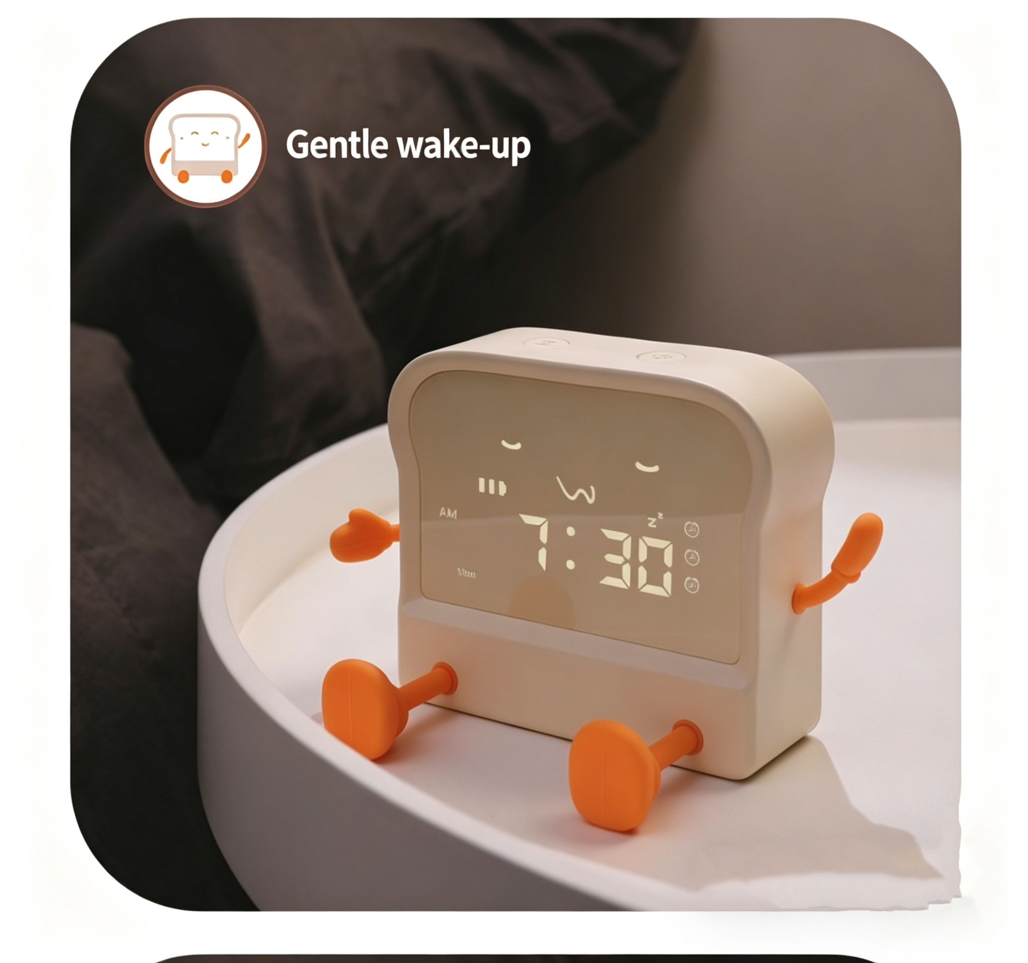 Meet your new daily companion – the adorable toast-shaped alarm clock! This multi-functional device combines a clock, alarm, timer, night light, and phone stand into one cute, compact package. Perfect for students, office workers, and anyone who loves a touch of whimsy in their daily routine.