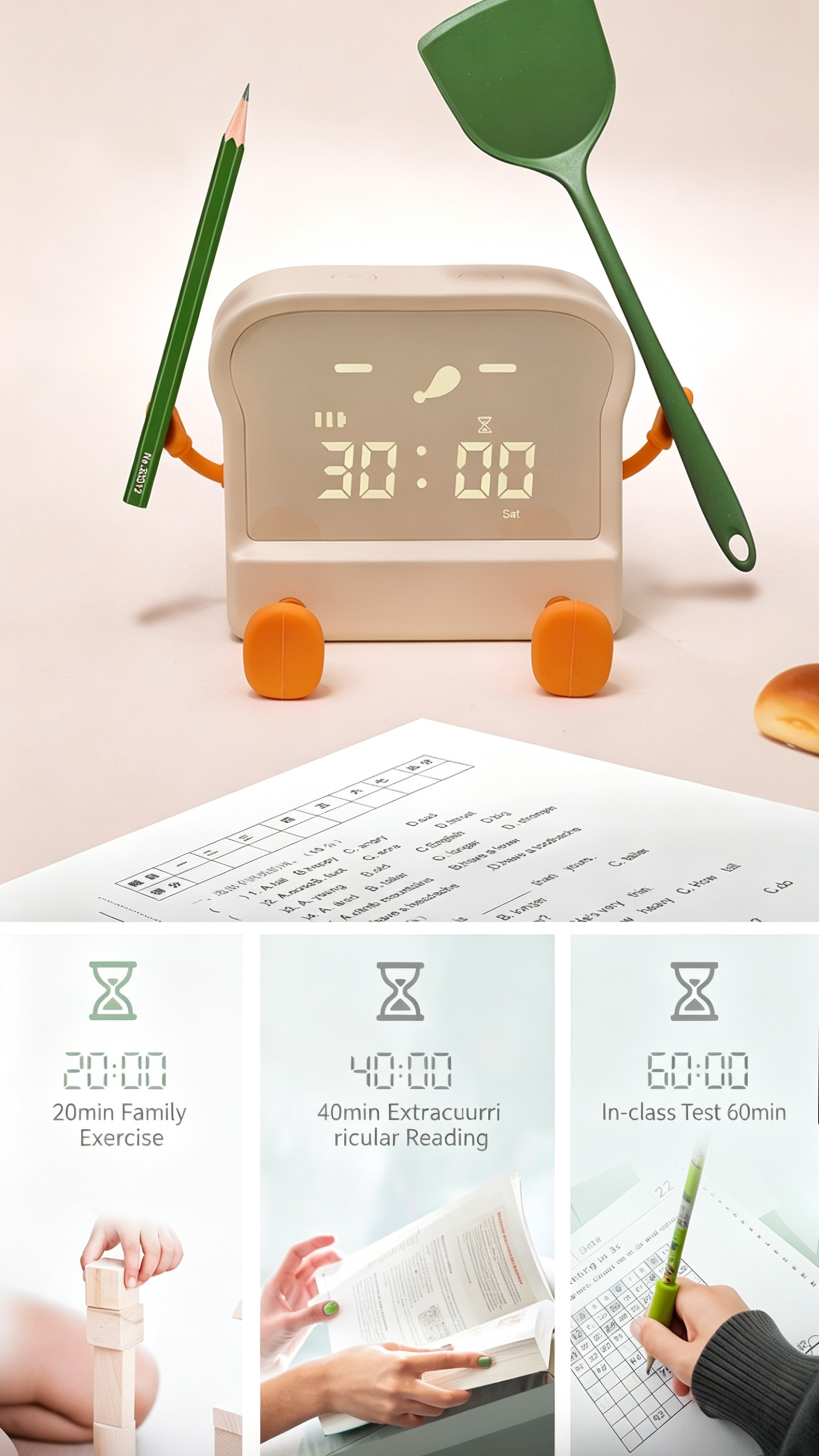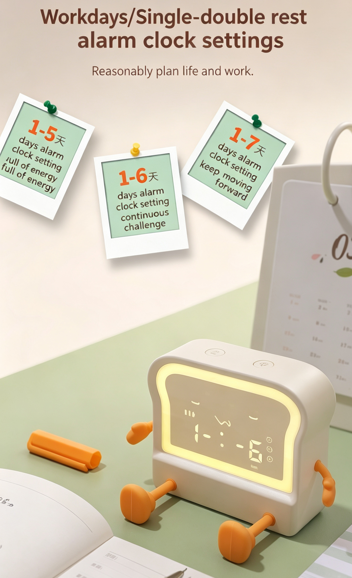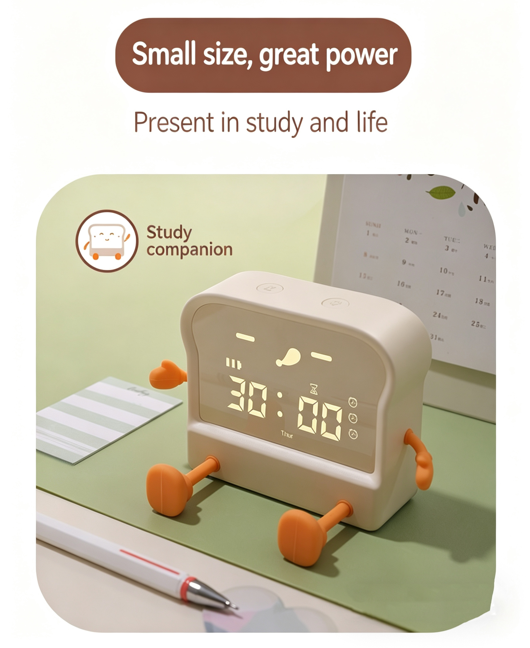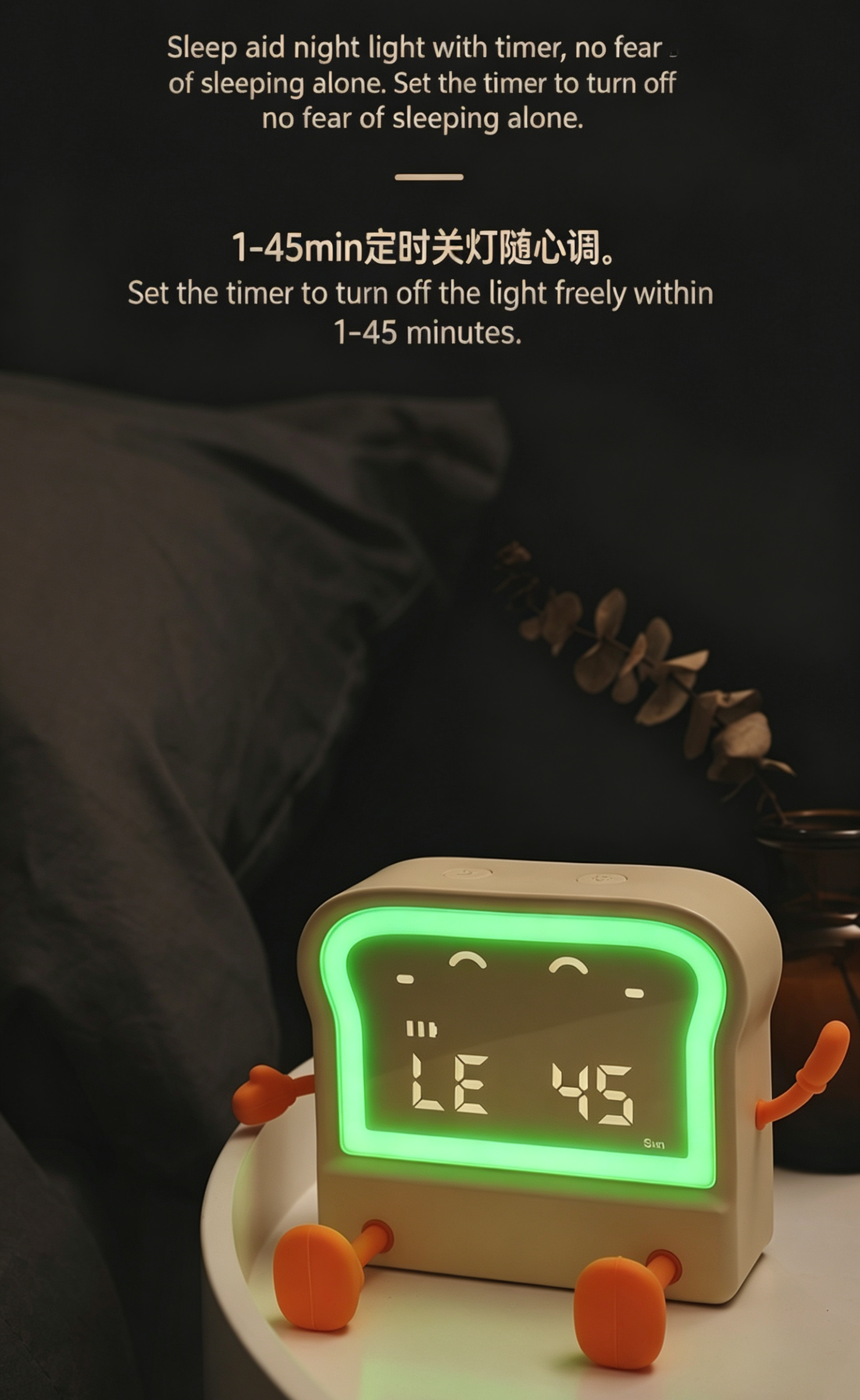 Meet your new daily companion – the adorable toast-shaped alarm clock! This multi-functional device combines a clock, alarm, timer, night light, and phone stand into one cute, compact package. Perfect for students, office workers, and anyone who loves a touch of whimsy in their daily routine.
