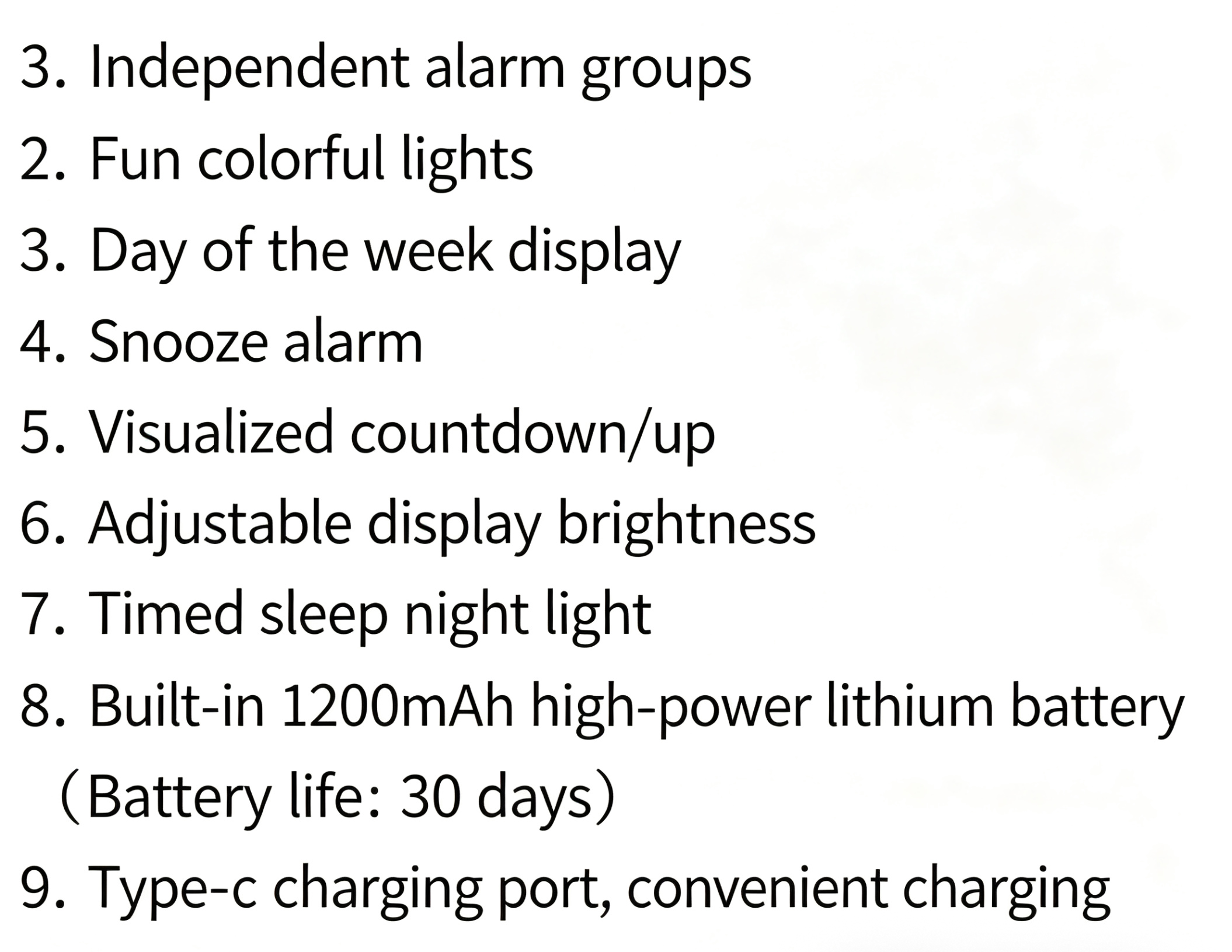The LED screen shows the day of the week, while the silent mechanism ensures no ticking sounds to disturb your sleep or focus.