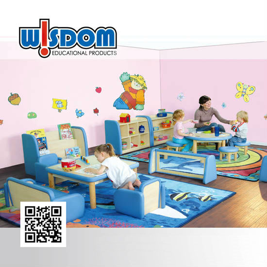 This collection of toddlers' furniture includes a table, chair and cabinet. They are designed in a mild blue tone for the comfort of children's eyes. Sturdily made, this collection is particularly great for playrooms, kindergartens and more.