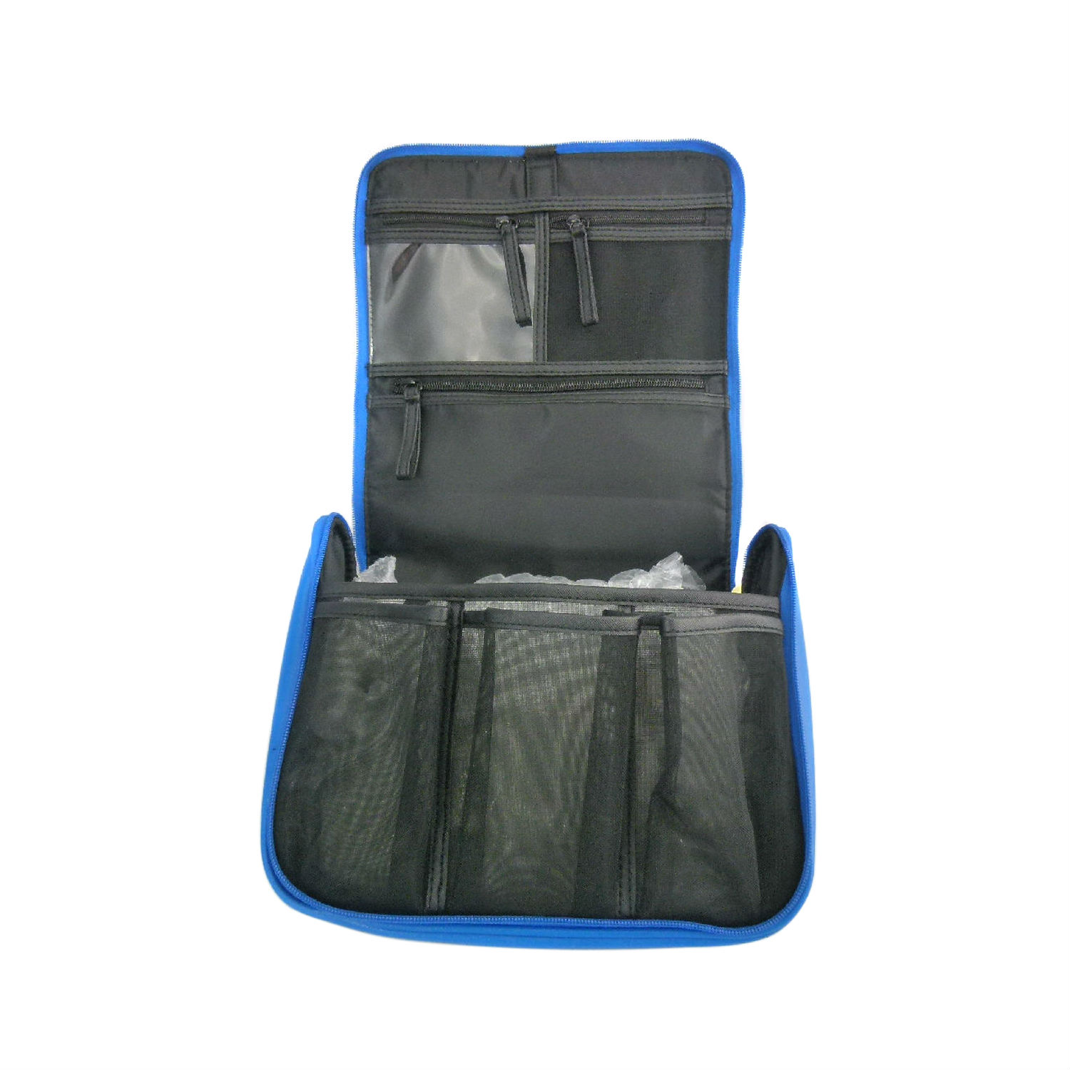 • The bag consists of interior netting compartments for common cosmetic equipments.