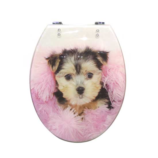 This is a toilet seat cover that is easy to installation. It comes with a cute and lovely dog print in bright colors. This seat cover promises a long service life.