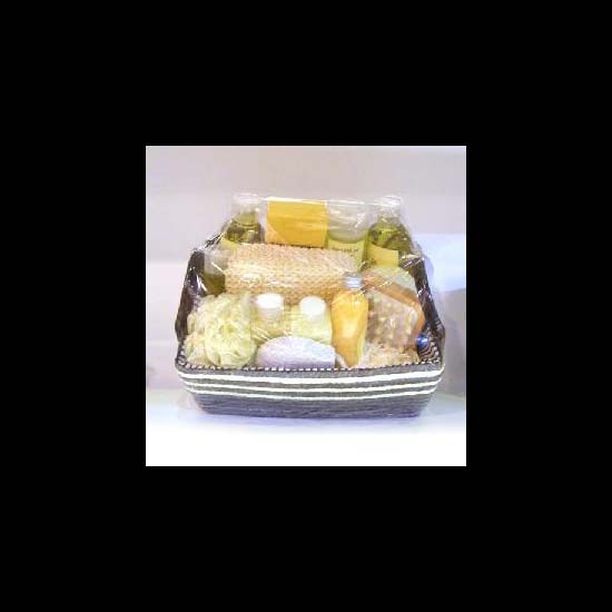 • This toiletries set is packed in a basket for easy storage