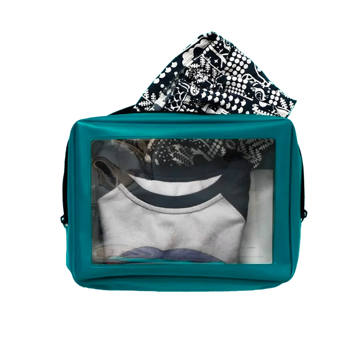 A toiletry bag, also called a makeup bag, a travel kit, a cosmetic pouch or other numerous names, is used to carry bathroom products such as makeup, haircare and skincare products when traveling or as storage.