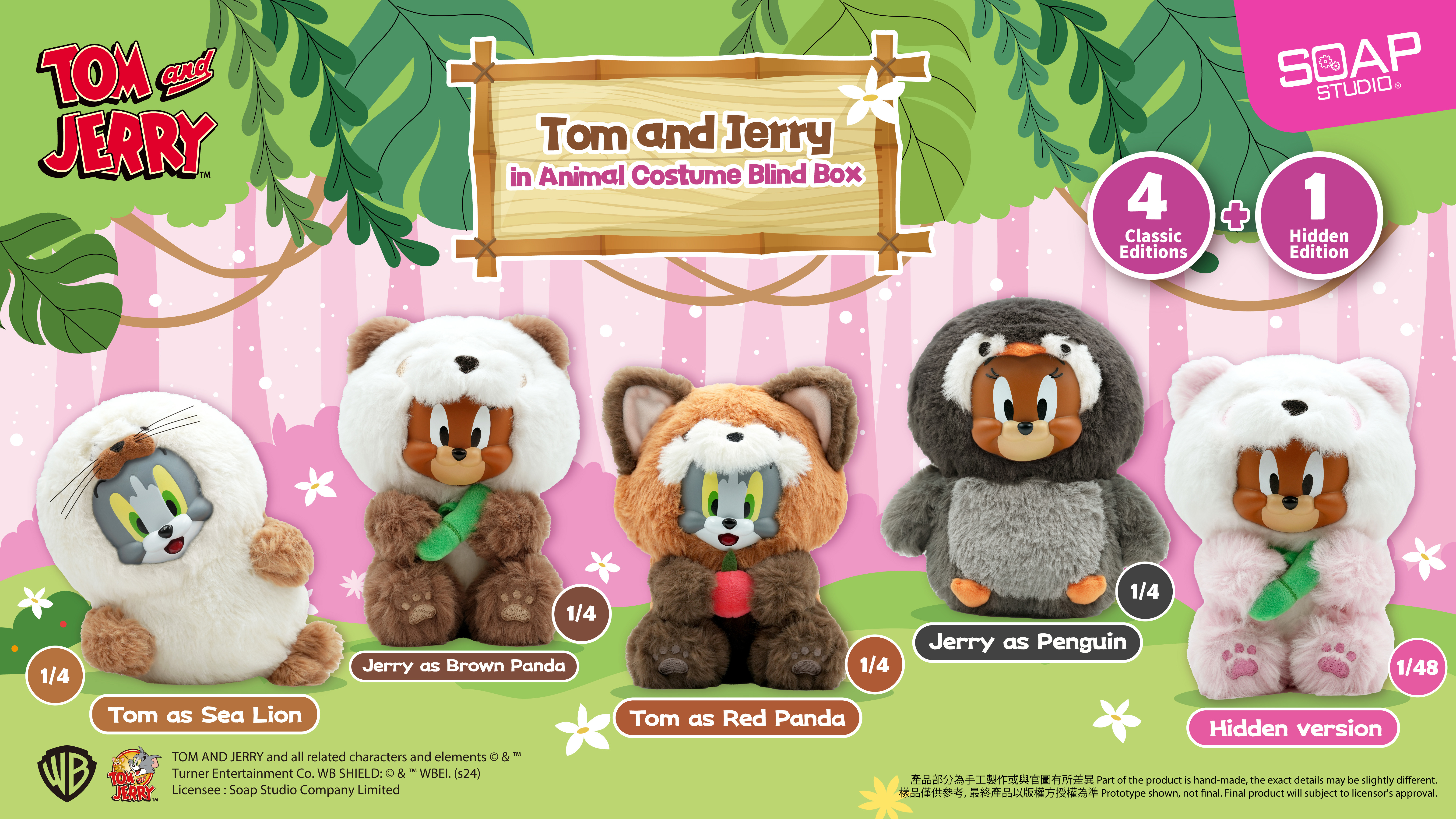 Bringing the timeless charm of Warner Bros.' classic animation Tom and Jerry to life, this exciting new blind box collection features Tom and Jerry dressed as a variety of adorable animals! Each style showcases the beloved Tom or Jerry with playful animal costumes, including a panda, red panda, sea lion, penguin, and more, brings you a delightful unboxing experience.