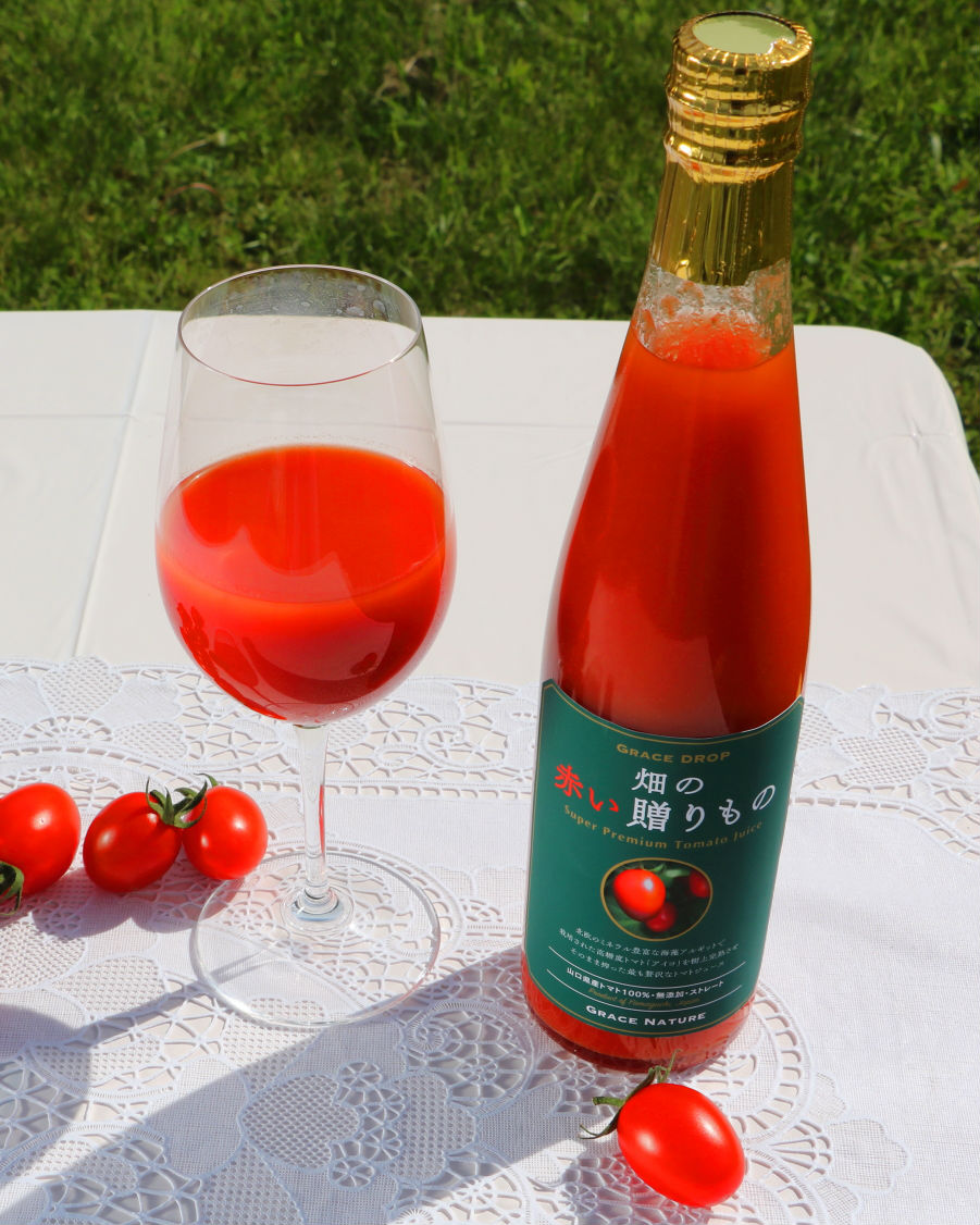 Thus, this “ALGIT AGRICULTURE” overturned the common sense of agriculture. In addition to the above, Grace Drop “Red gifts of the field" that is 100% straight tomato juice is made from the AIKO mini-tomato which is fully ripe on the tree.