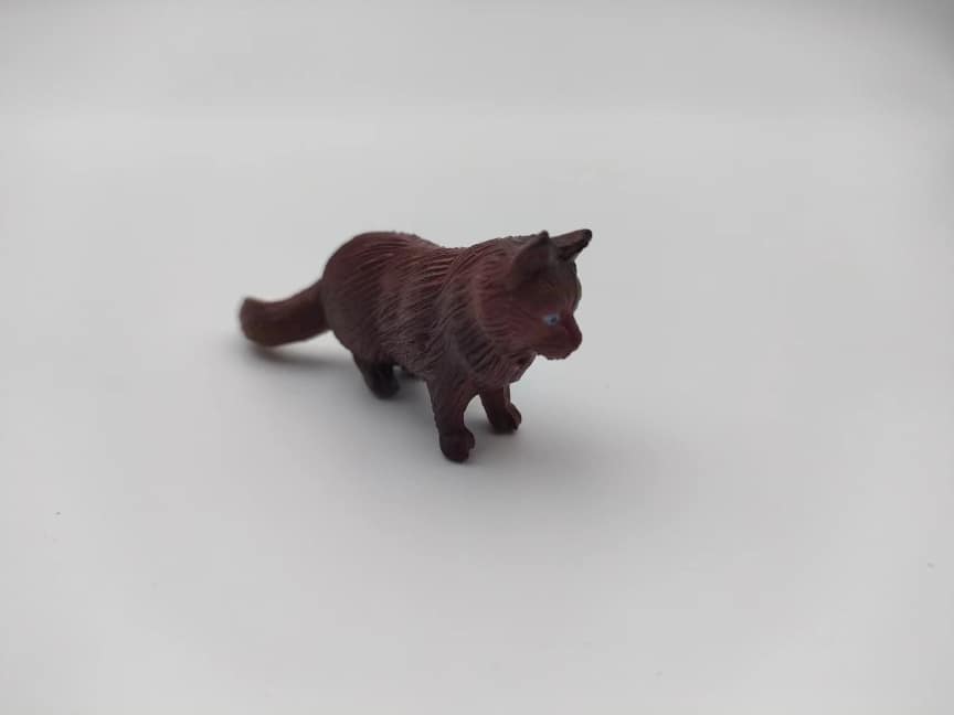The product you are currently viewing is a two-tone dark brown PVC toy of a kitten, formed by injection molding, spray painting and hand coloring. It has a small and agile head, resembling a ripe ear of wheat. It is mature, stable, low-key and reserved. It is a great choice for adventure games and role-playing, and can also be a surprising gift.