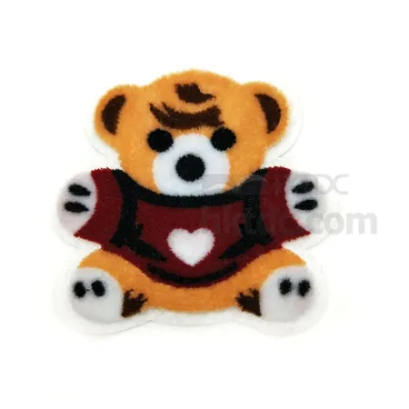 Add a lovely touch to garments, bags and more with this chenille embroidery patch. It comes in the design of a cute dog wearing a cap and has heat cut or hand cut borders. This chenille embroidery patch is easy to attach and is available in custom designs.