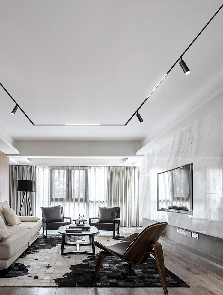 Magnetic lamp is a track-type quick-swap light that uses a magnet to quickly absorb characteristics.The utility model is composed of two parts magnetic track and the lamp. The track has three installation modes: surface mounted, recessed and suspended; the lamp consists of various modular lamp such as flood linear lamp, anti-glare accent linear spotlight, anti-glare high-power spotlight, hanging lamp, wall washer and decorative lamp. The modular lamp can be used alone or in combination. they have good anti-glare effect, and can be combined with spot, line and panel to meet the needs of various lighting requirements. This kind linear magnet lamp is fashionable, wireless lamp .It is a modern lamp to meet architectural design concept . It is an ideal choice for offices, showrooms, specialty stores, hotels, villas, clubs and other places.