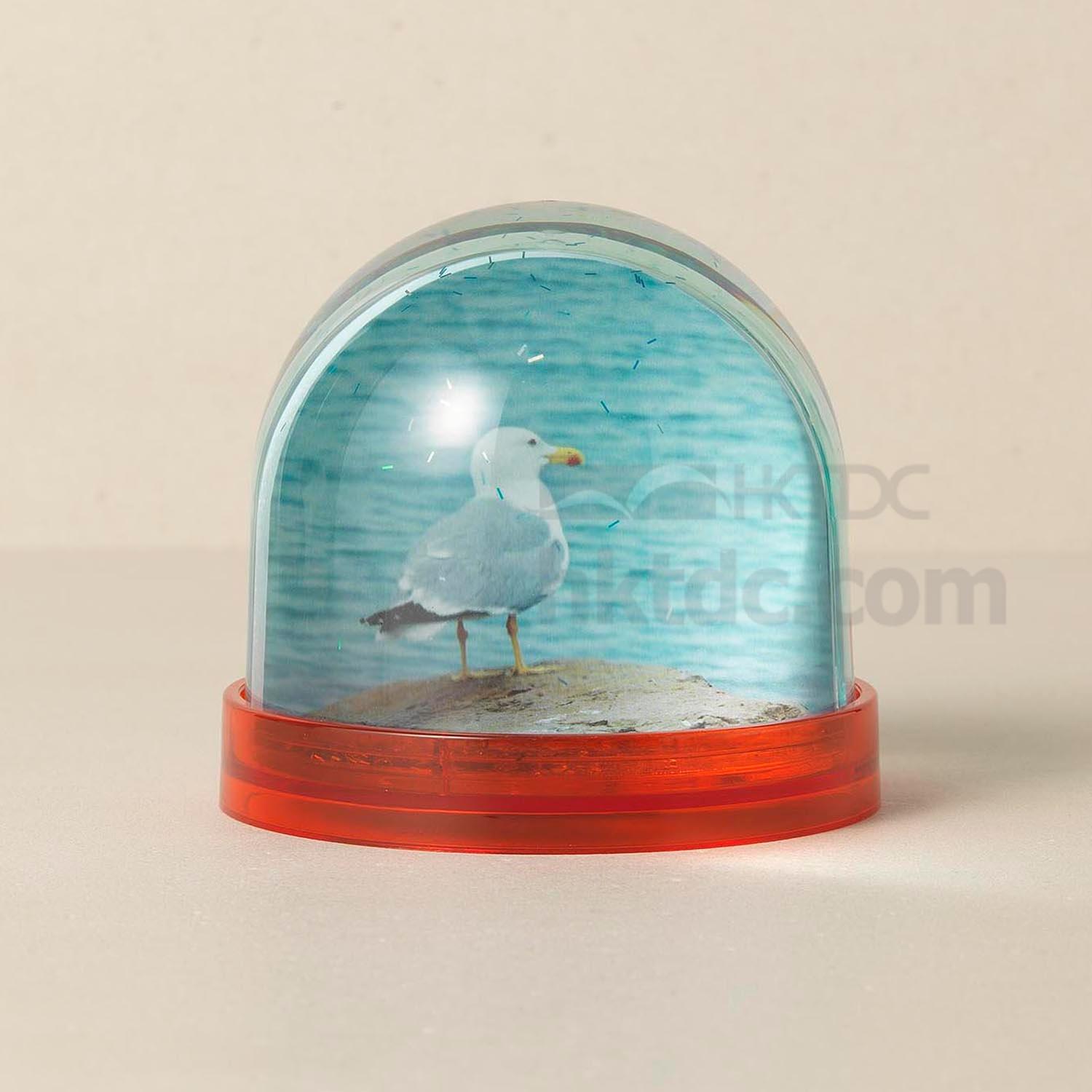 This is a photo globe that resembles a snow globe. Made of plastic, this photo globe is clear and durable. Simply insert your favorite photo inside for a fun effect.