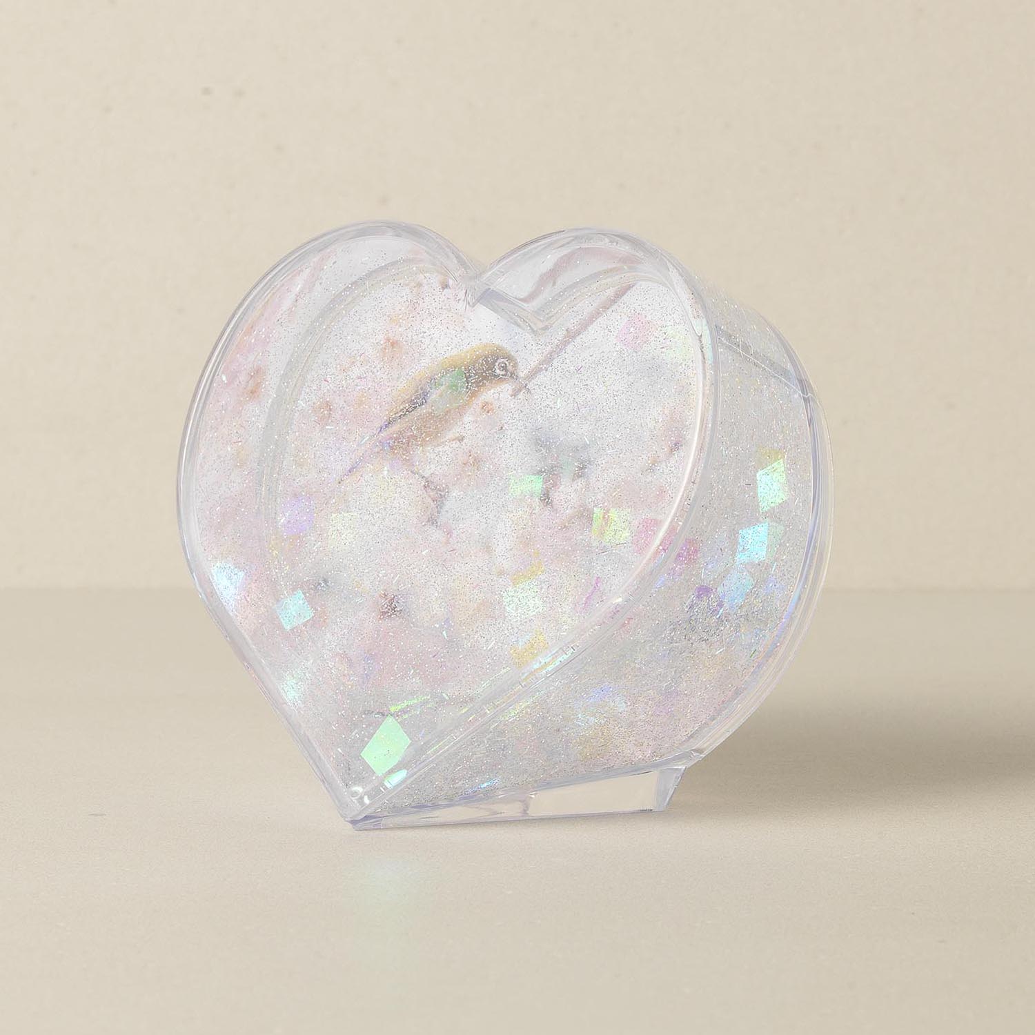 Top Selling High Quality Valentines Sparkling Glitter Heart Shaped Acrylic Snow Globe
