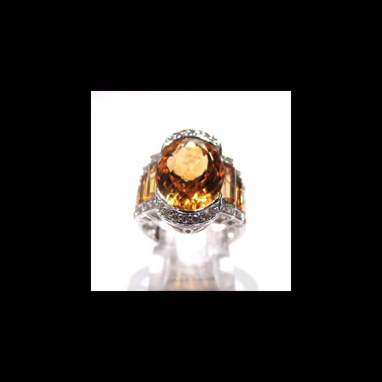 • A big oval topaz in the middle of the ring